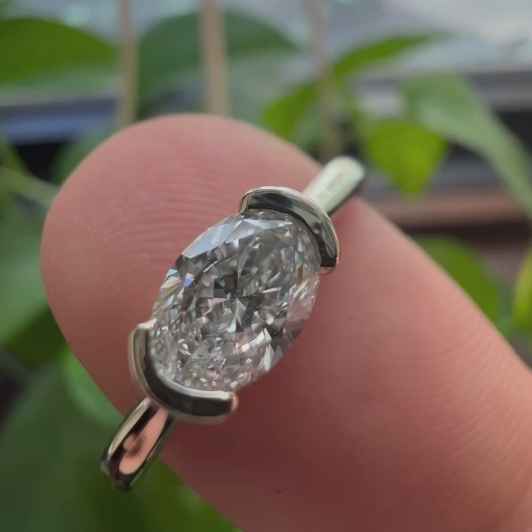 0.50tcw Oval Lab Grown Diamond Half Bezel Engagement Ring | IGI Certified | D-E-F Color | VVS–VS Clarity