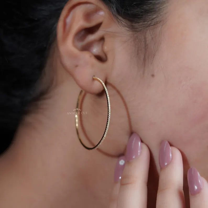 For those seeking timeless essentials, these diamond-cut hoop earrings in 14K gold and other gold purities offer both versatility and sophistication. The carefully matched stones ensure consistent fire and brilliance, making these pave diamond hoop earrings a staple piece you will reach for again and again.