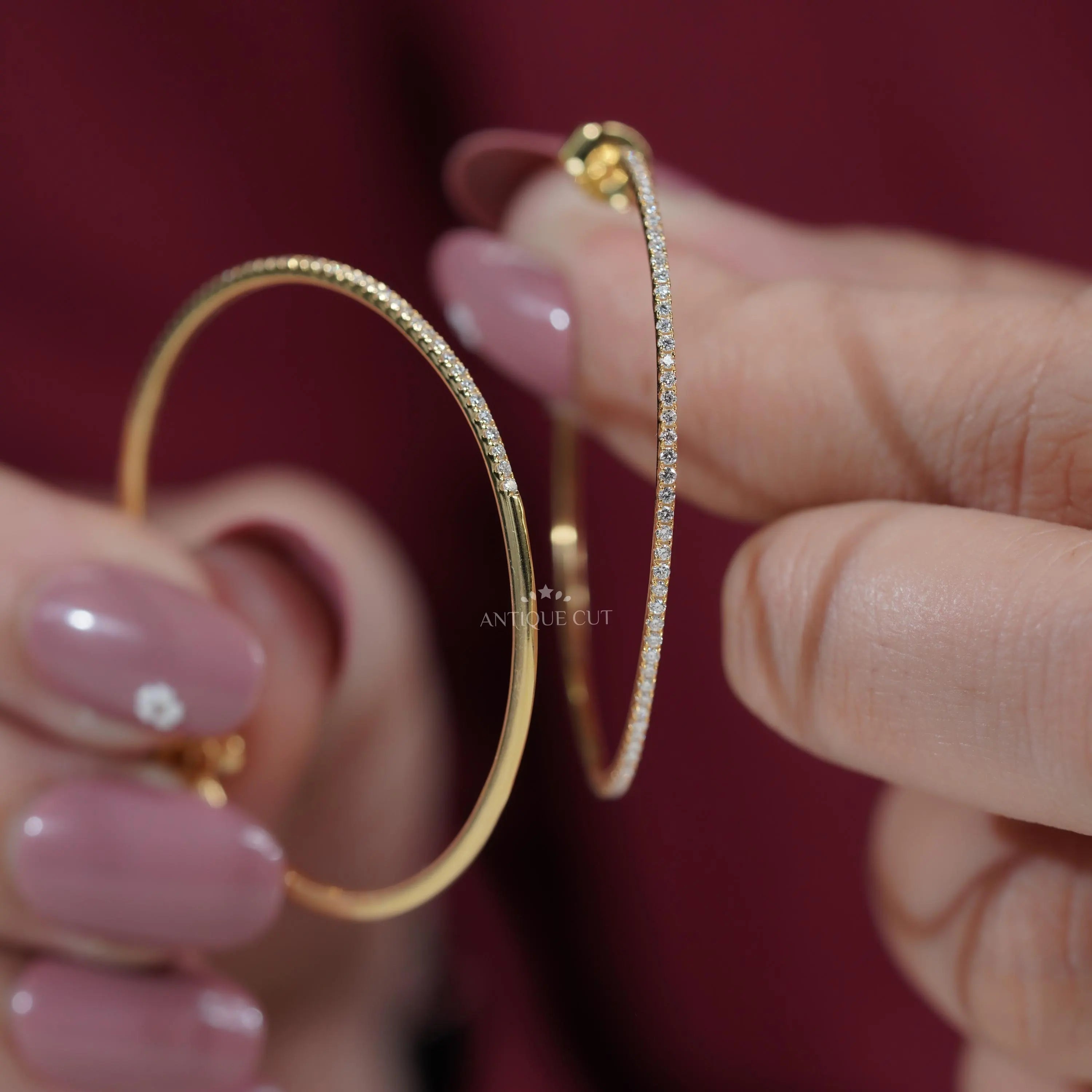 Whether you prefer diamond hoop earrings in white gold, classic yellow, or modern rose, these diamond round hoop earrings offer understated luxury with lasting appeal. Clean, brilliant, and endlessly versatile, they are the kind of earrings you never have to take off.