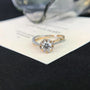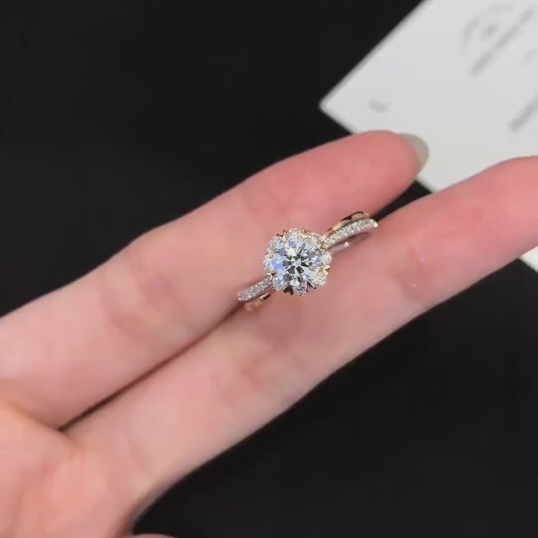 ● Shank: Yellow gold with modern double wave and white prong contrast