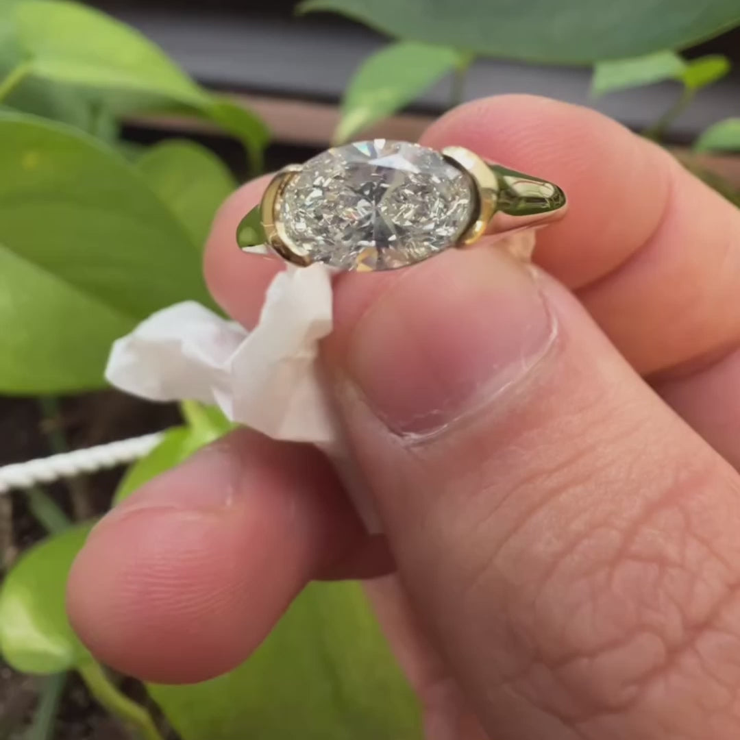 1.00ct Oval Lab Grown Diamond Half Bezel Engagement Ring | IGI Certified | D-E-F Color | VVS–VS Clarity