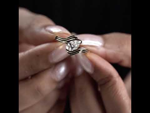 Featuring a bezel-set pear-shaped center embraced by a flowing wave-inspired band — sleek, elegant, and unforgettable.
