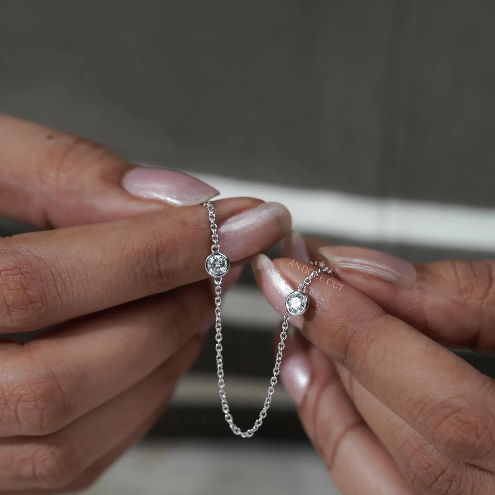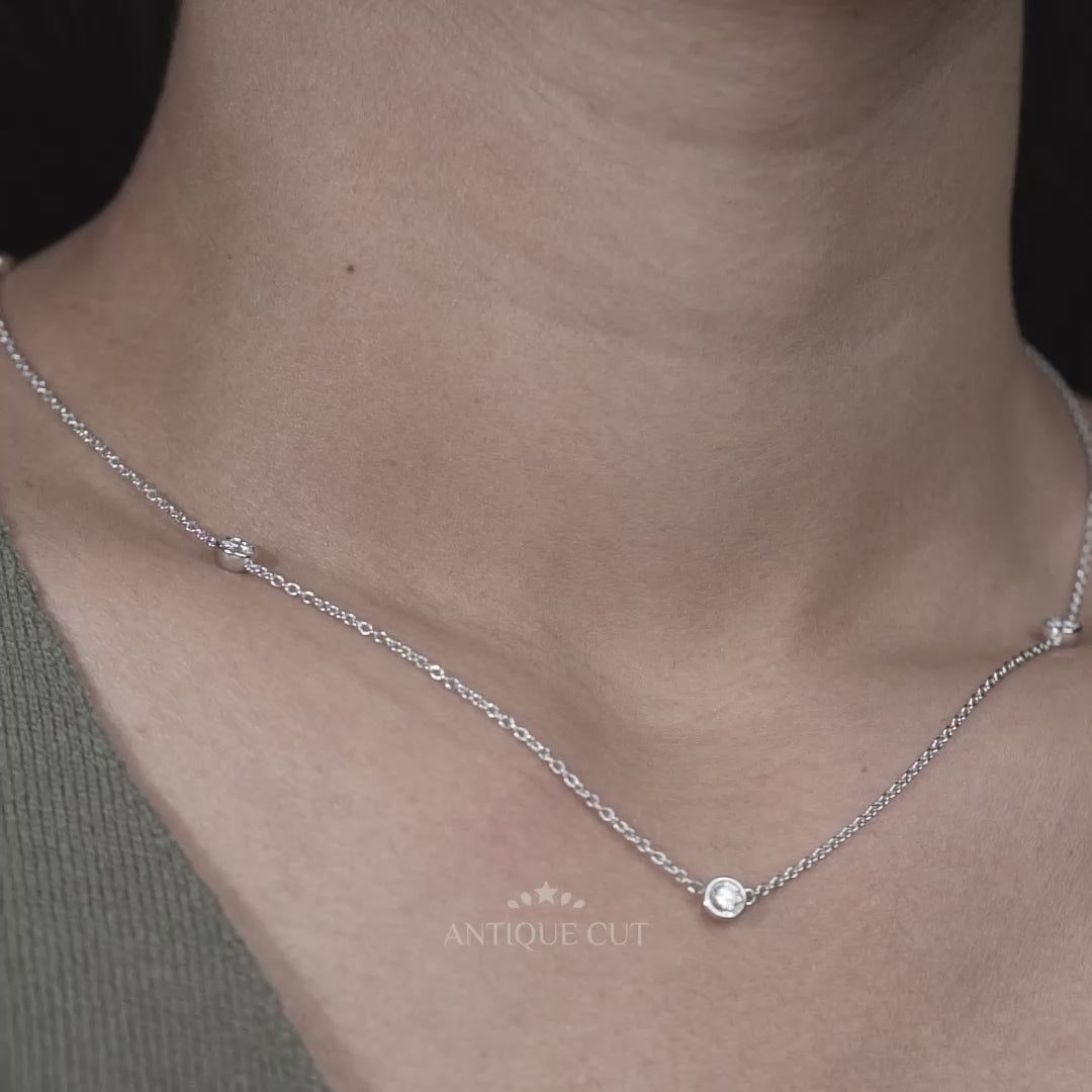 1.40 TCW Bezel Set Diamond Station Necklace in Solid Gold | Lab Grown Diamond Necklace | Everyday Diamond Jewelry | Gift for Her