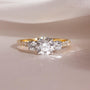 Design – Classic three-stone style with extra brilliance from pavé diamonds