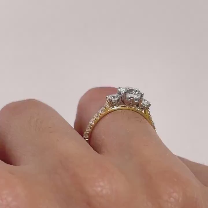 1.50tcw Round Cut Lab Diamond Engagement Ring | Three Stone Pavé Design | Yellow Gold