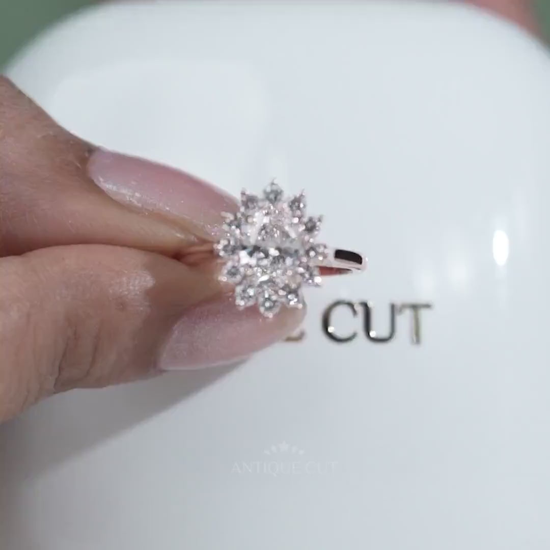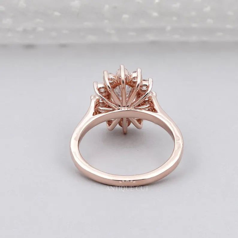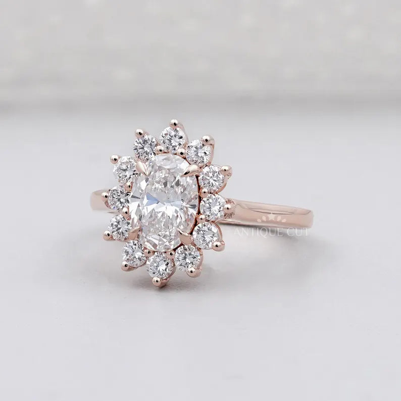 1.60TCW Oval Cut Lab Grown Diamond Halo Engagement Ring | Floral Ring | Round Diamond Accent Ring | Rose Gold | IGI Certified D-E-F VVS-VS.