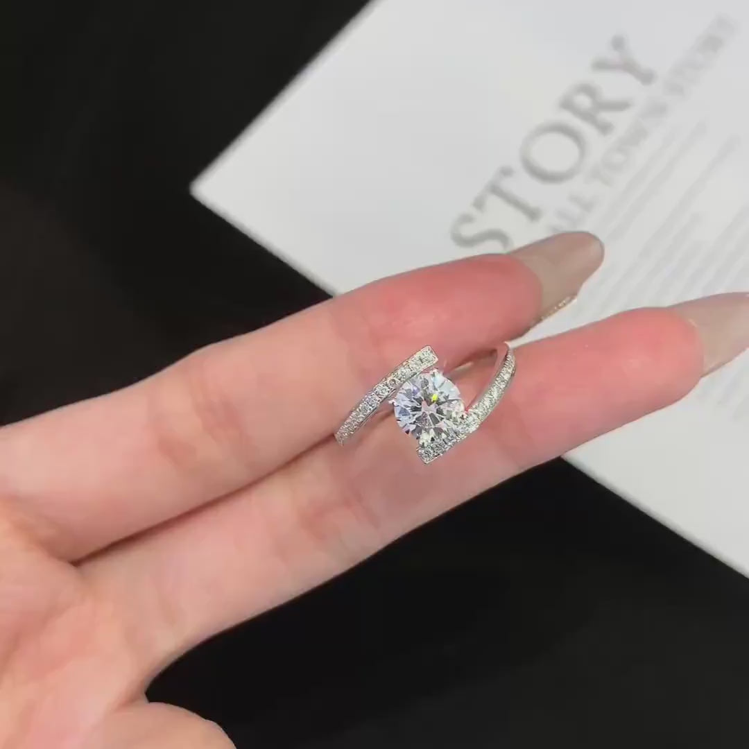 A meaningful 1.70tcw lab-grown diamond engagement ring featuring a 1.50ct round center stone in a symbolic bypass band. IGI certified, ethically sourced, and handcrafted in 10K/14K/18K gold. A perfect fusion of elegance and modern symbolism.