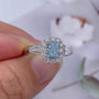 Make a statement with this 1.75tcw Radiant Fancy Blue Lab-Grown Diamond Ring. Features a 0.85ct IGI-certified center with round and tapered baguette halo accents. Crafted in 10k/14k/18k white gold, this three-stone ring blends color, sparkle, and timeless beauty.