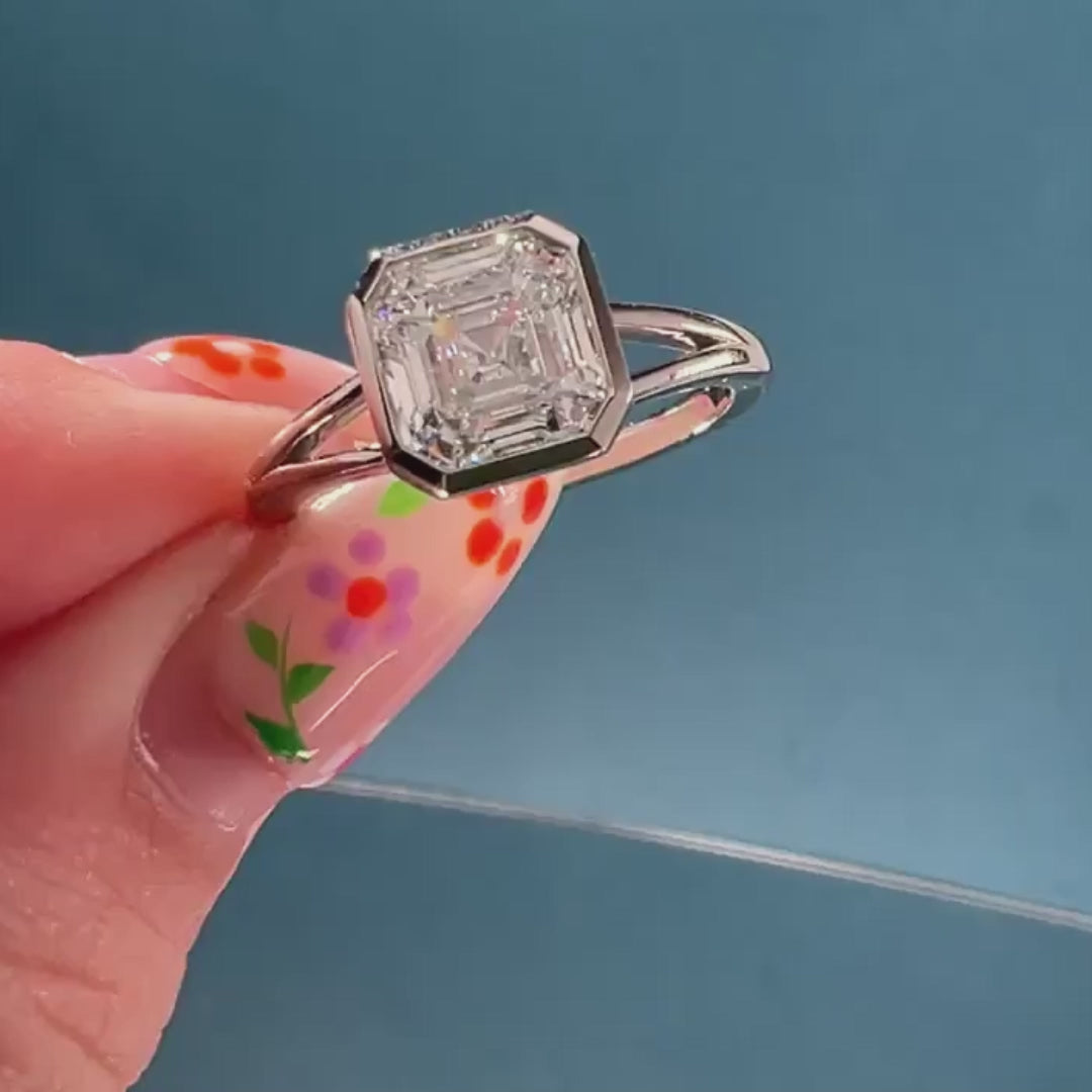 2.00ct Asscher Lab Diamond Ring | Bezel Set | Split Shank | IGI Certified | Custom Gold