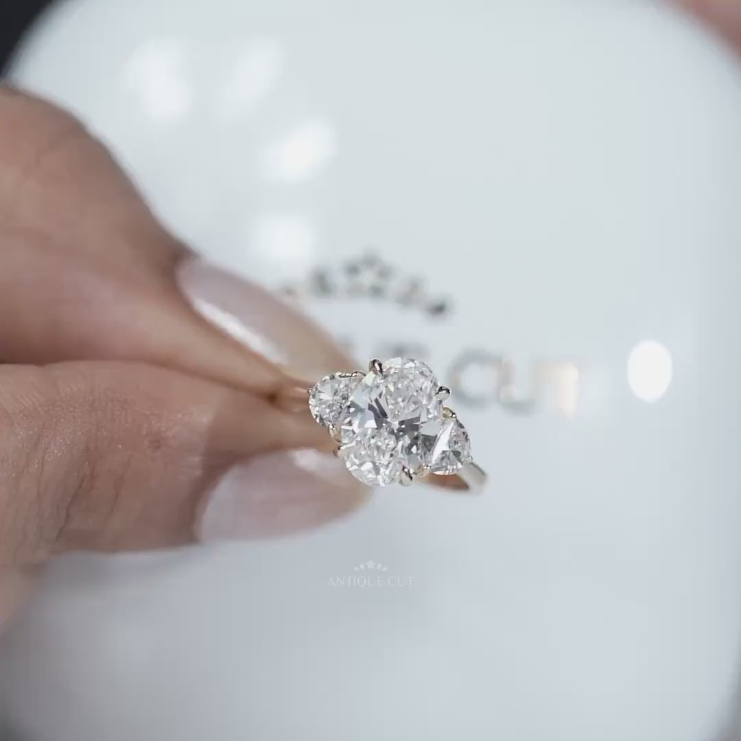 Celebrate your forever moment with this breathtaking 2.00ct oval engagement ring featuring sparkling 0.10ct antique-cut side stones in a luxurious three-stone design. Expertly crafted in solid 14K yellow gold, this piece blends the romance of vintage jewelry with the timeless sparkle of modern craftsmanship.