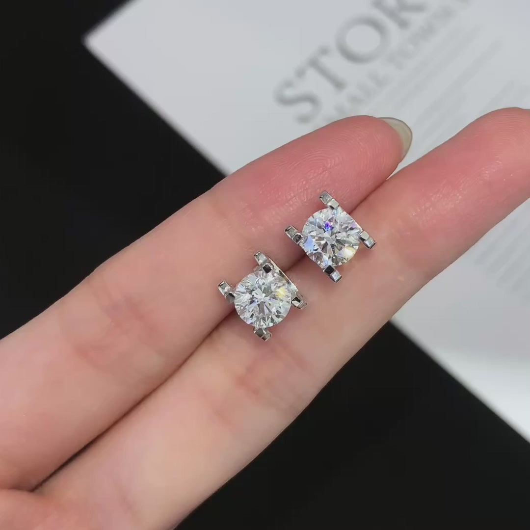 2.00tcw Lab Grown Diamond Round C De Cartier Stud Earring, D-E-F Color, VVS - VS Clarity