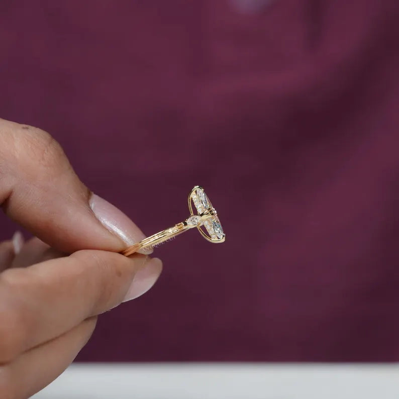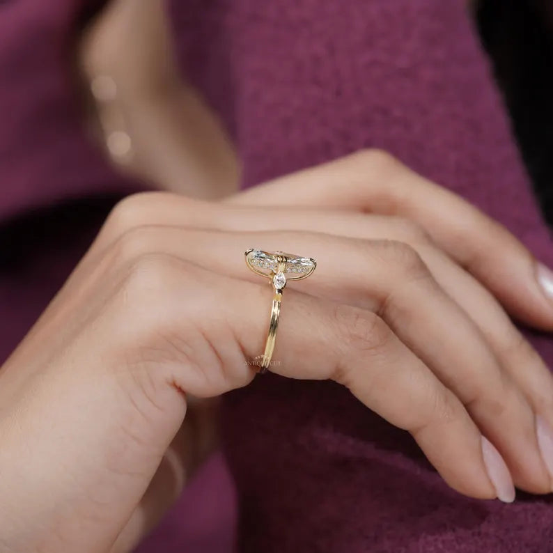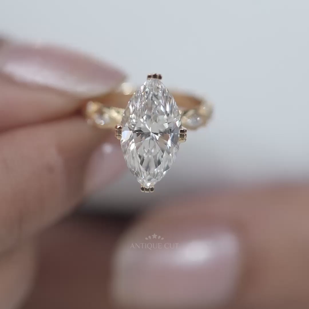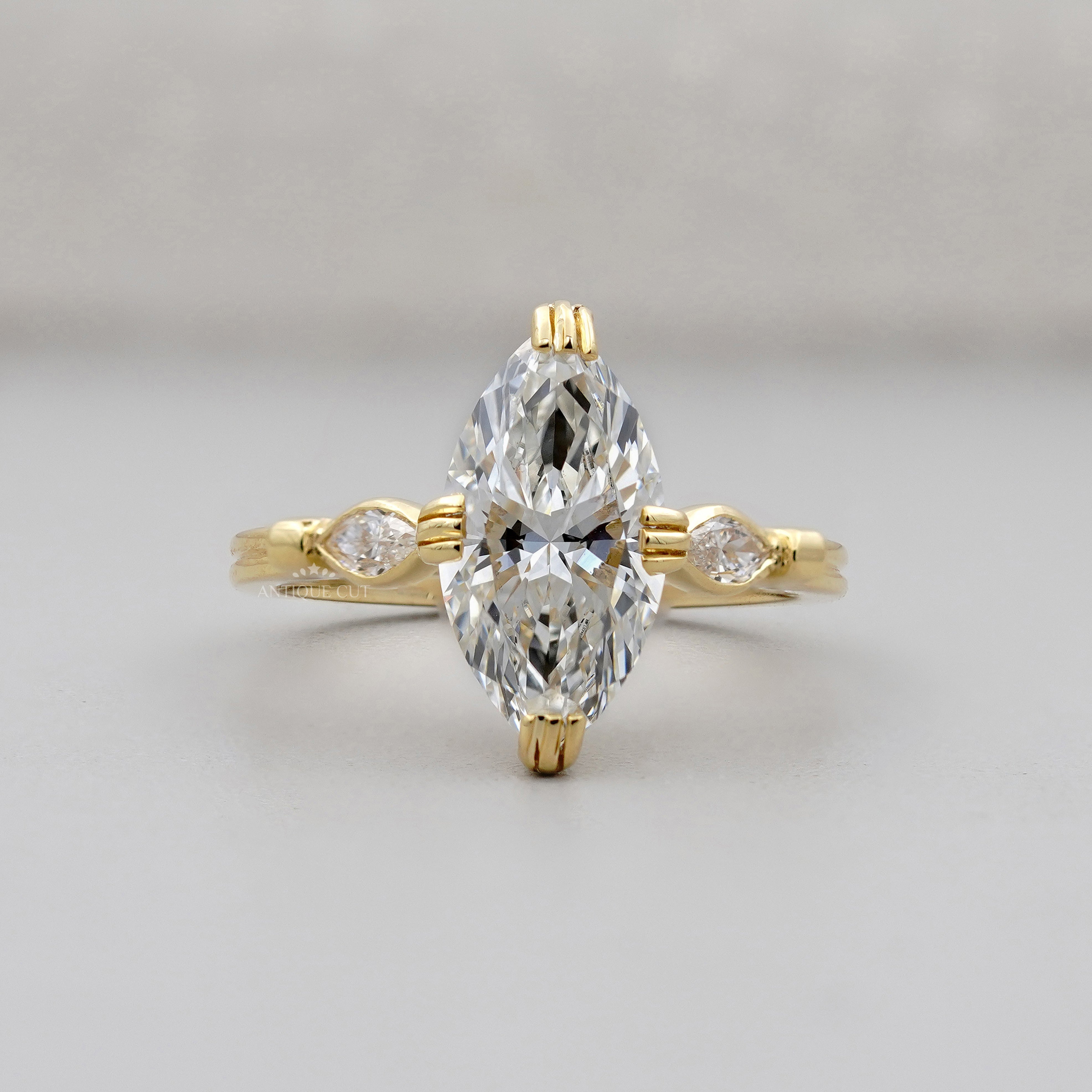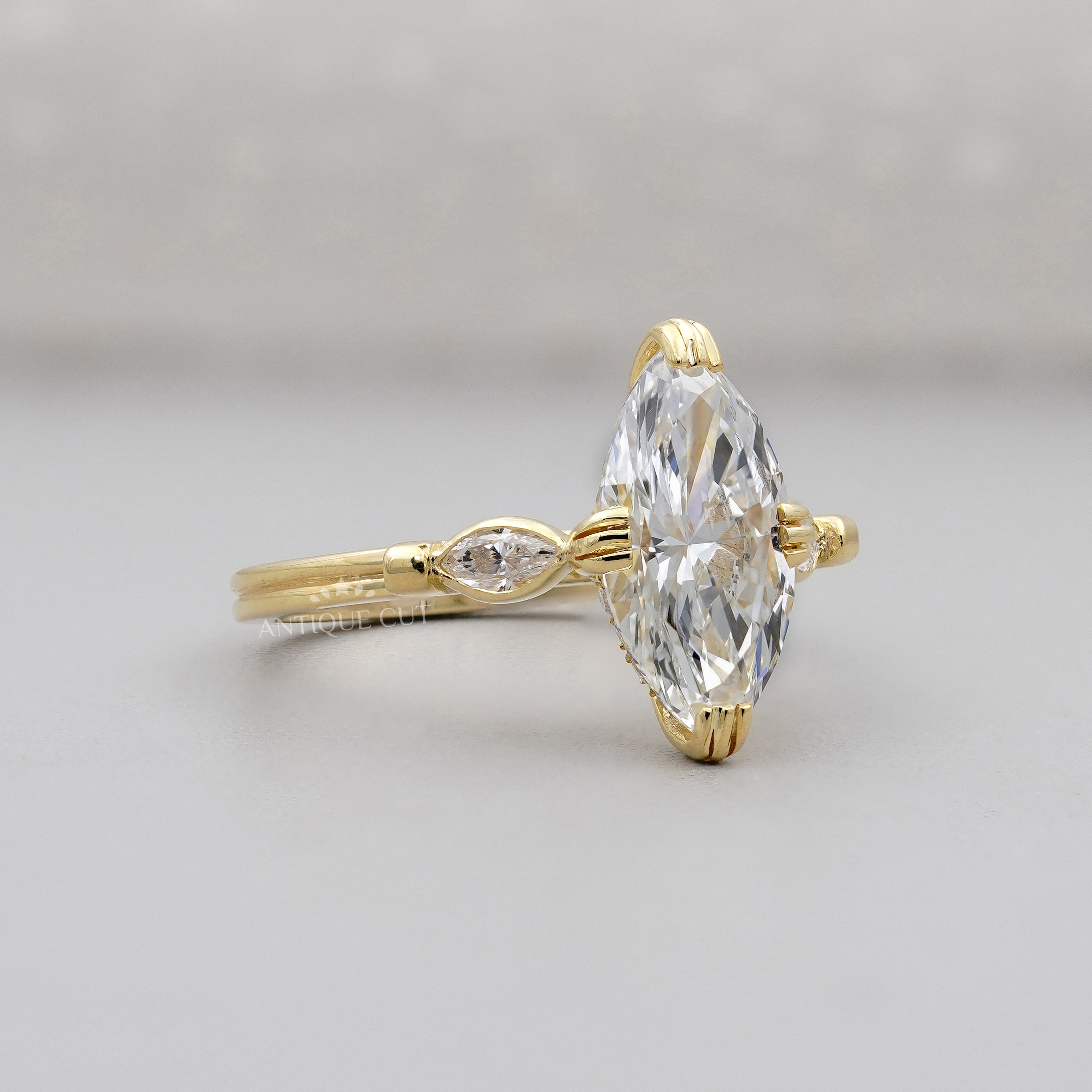 2.30 TCW Marquise Diamond Engagement Ring, 0.30ct Marquise Side Stones, Yellow Gold Three-Stone Ring , Lab Diamond Ring , IGI Certified.