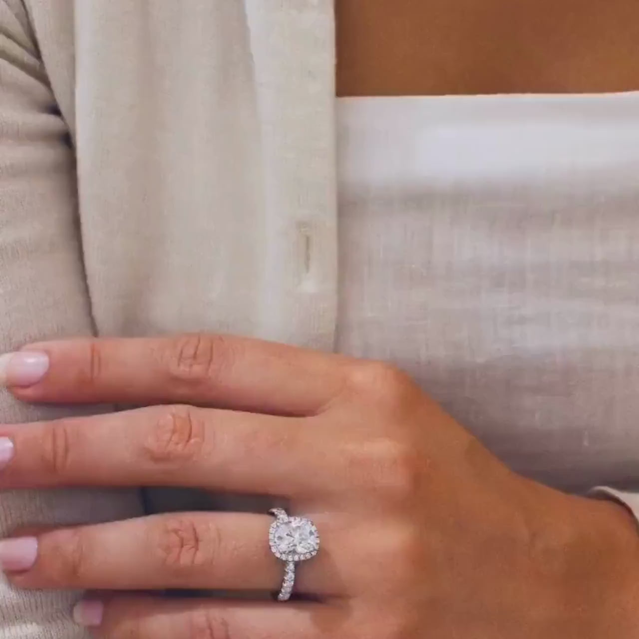 ✅ Bold 2.00ct cushion-cut center with halo & pavé