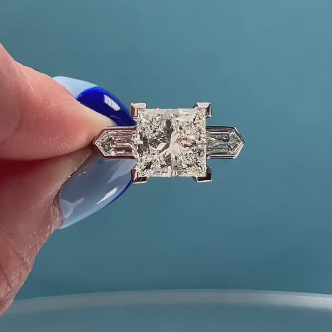● Diamond – 2.00ct Princess center + 0.50ct Bullet sides
