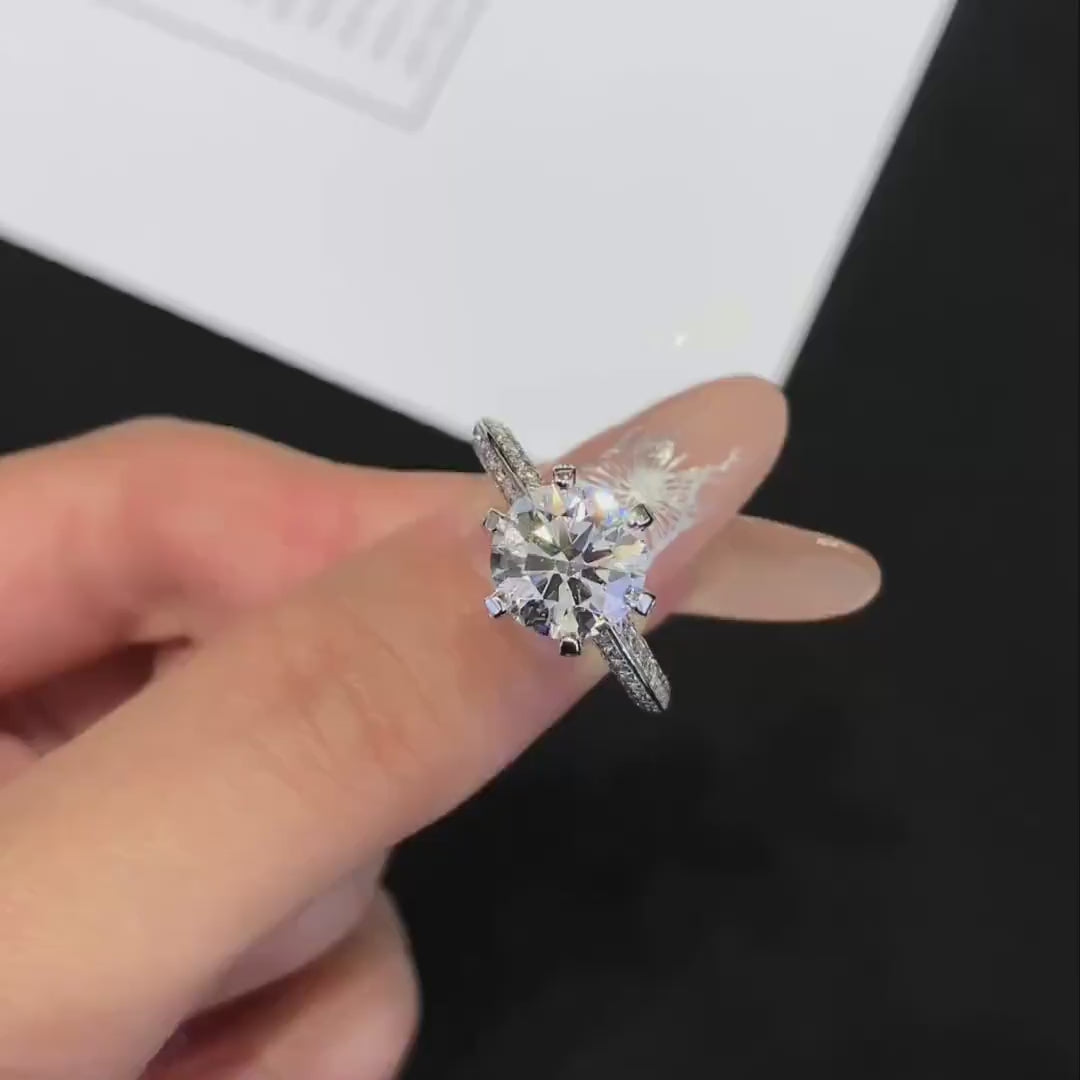 This 3.00tcw halo engagement ring features a 2.00ct round brilliant center and 1.00ct side diamonds in DEF color, VVS–VS clarity. IGI certified and handcrafted in 10k, 14k, 18k, or platinum white gold.
