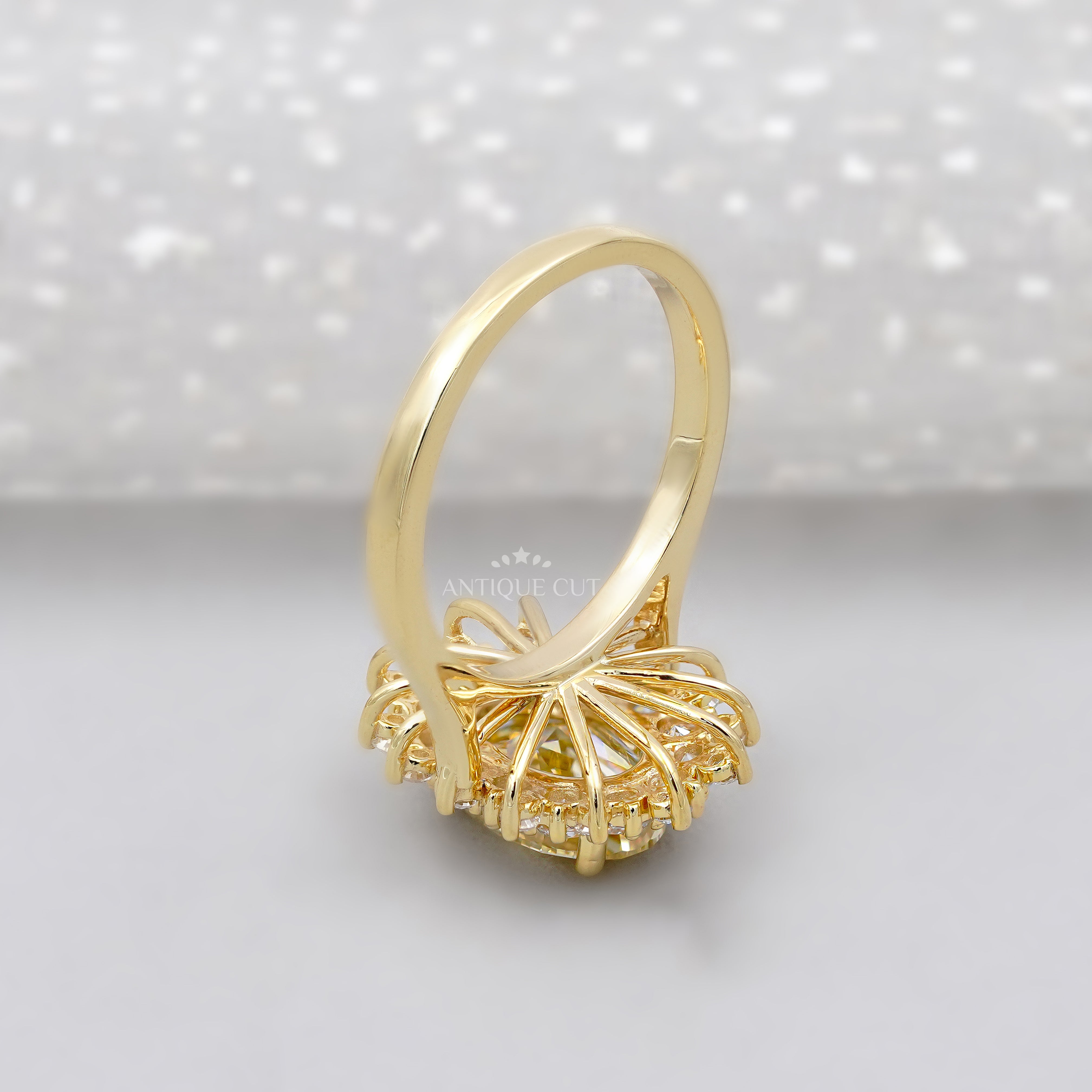 2.70tcw Oval Fancy Yellow Diamond Halo Engagement Ring | Yellow Gold Vintage Floral Ring