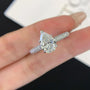 This 2.80tcw pear-shaped lab-grown diamond ring features a 2.00ct center stone in a secure 5-prong setting with 0.80ct pavé side stones. IGI certified, D–E–F color, VVS–VS clarity, and handcrafted in white gold — elegant, ethical, and timeless.