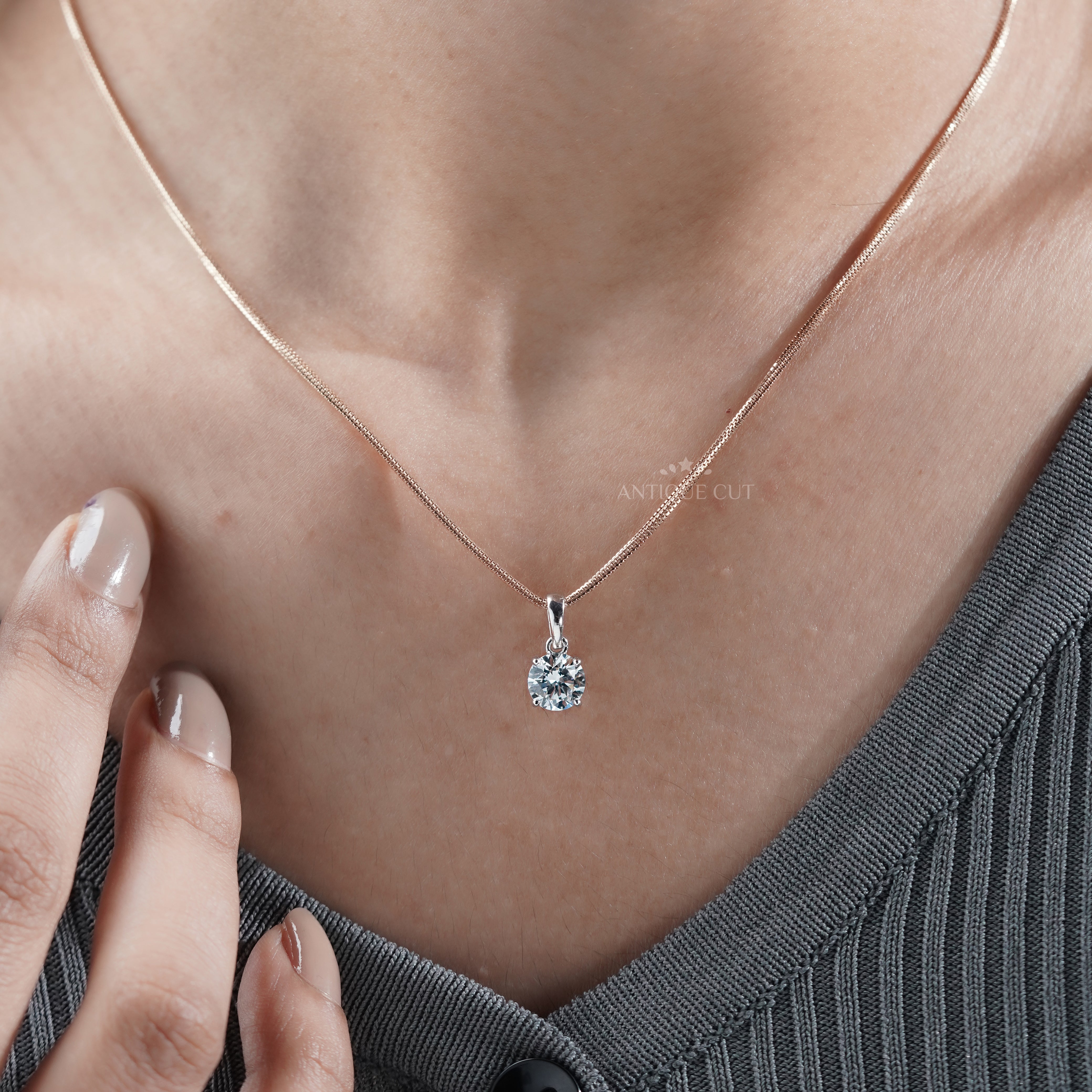 2.00 Carat Round Diamond Pendant Necklace | Classic Solitaire Diamond Necklace | 14K White Gold Prong Set