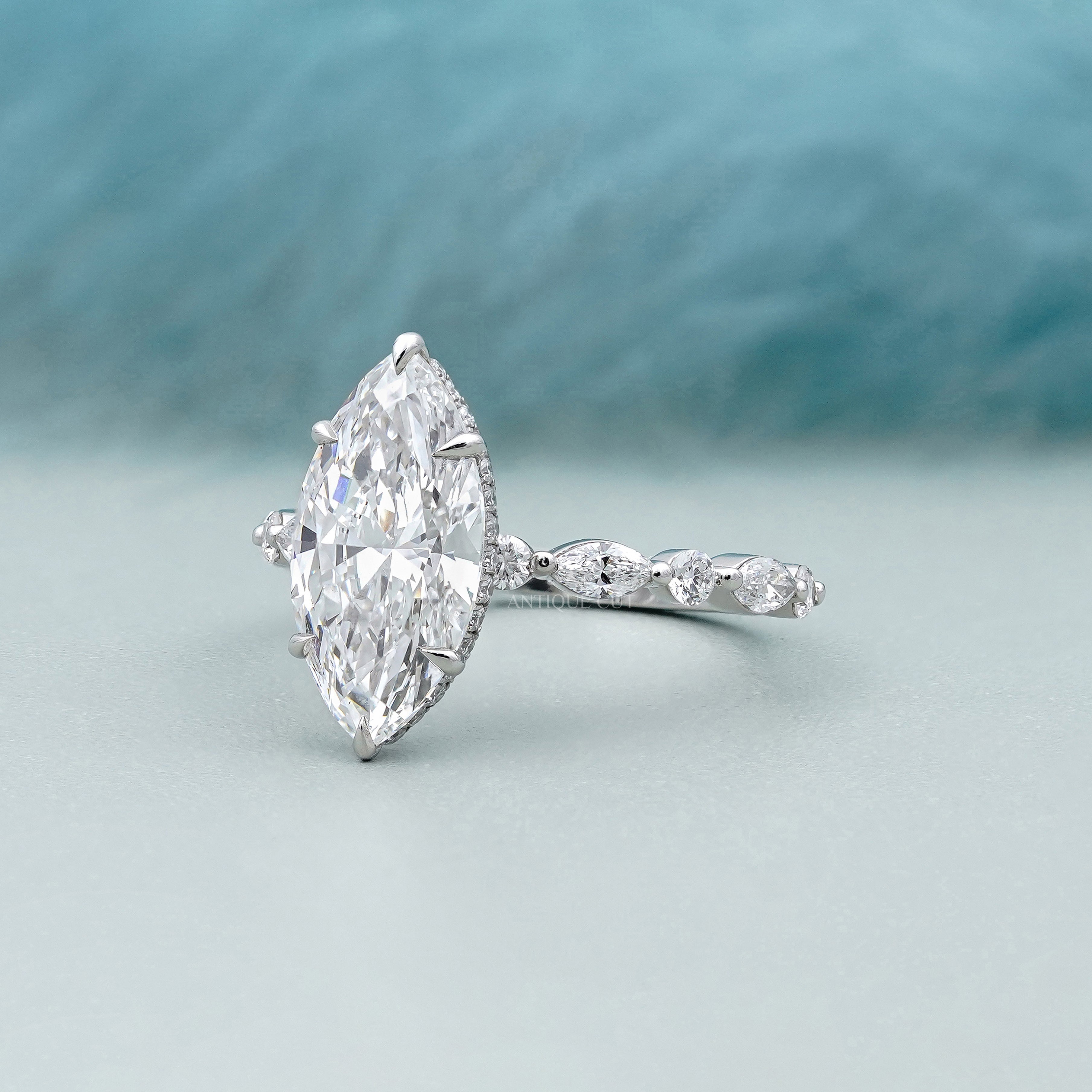 ✔️The 3.00ct marquise center gives a long, elegant look that stands out.