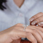 The band is crafted in polished white gold and finished with a smooth, comfortable fit. Each stone is hand-set to give the ring a balanced look from every angle. It’s a strong choice for someone who wants a refined, graceful ring that feels both modern and timeless.