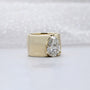 Celebrate modern elegance with this 3.00ct Pear lab-grown diamond ring set on a bold wide yellow gold band. IGI certified, ethical, and designed to make a statement.