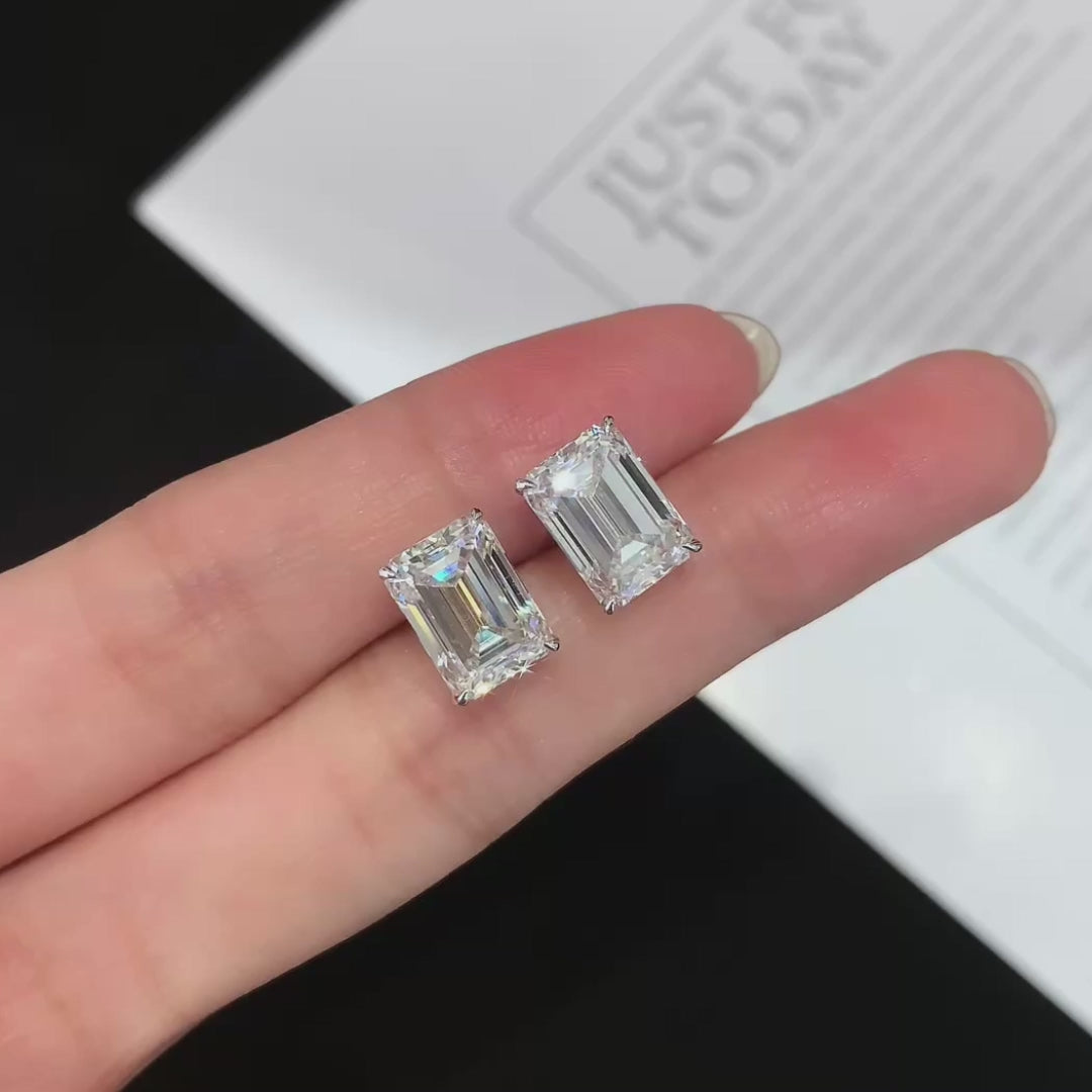 3.00tcw Lab Grown Diamond Emerald Stud Earring, D-E-F Color, VVS-VS Clarity