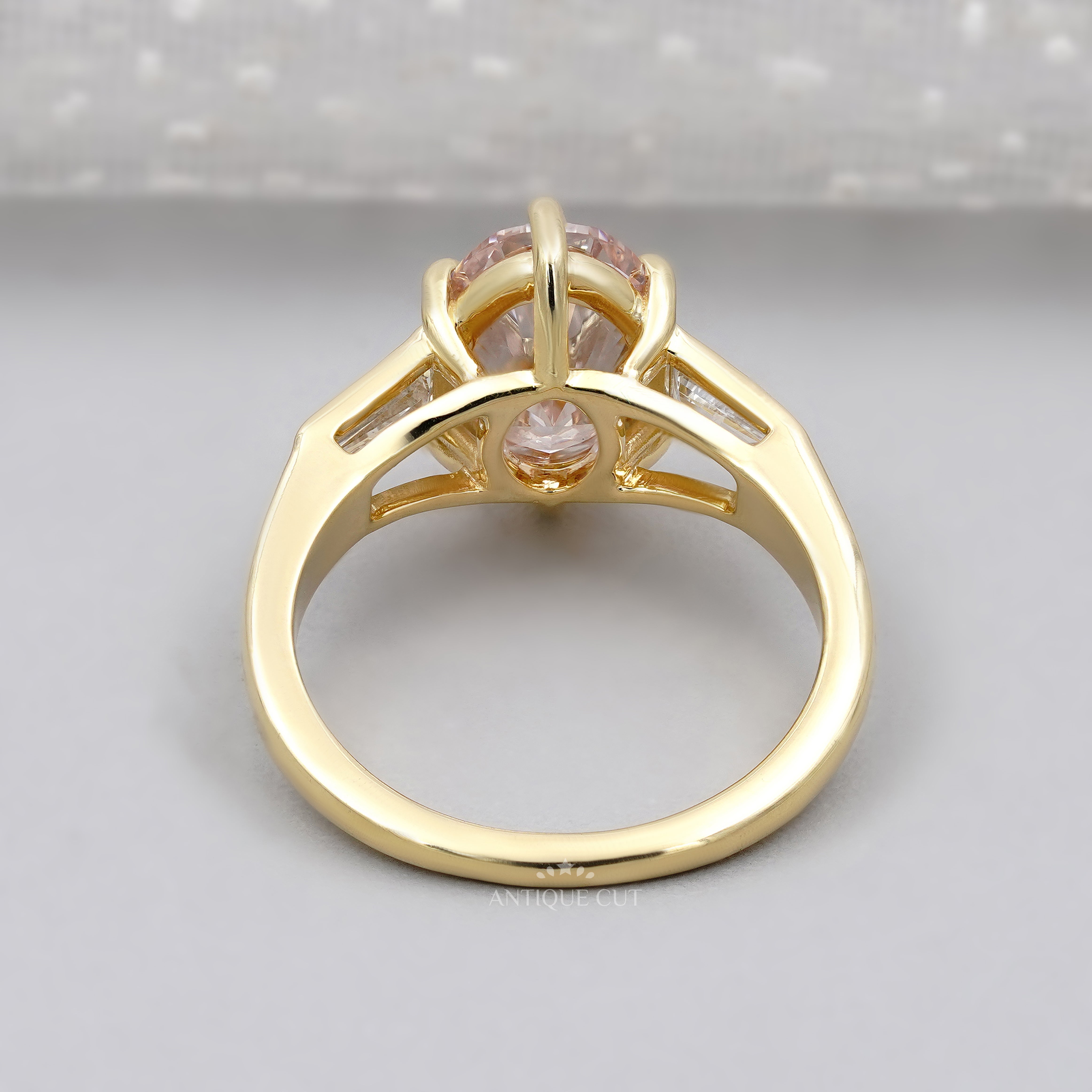 3.00tcw Oval Fancy Pink Lab Grown Diamond Ring with Tapered Baguette Side Stones