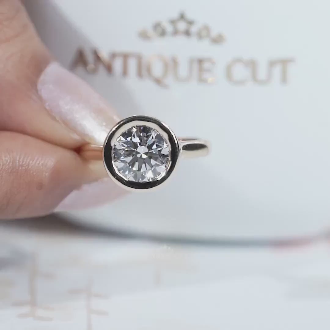 3.20ct Round Cut Bezel Set Engagement Ring Solid 18K Yellow Gold Solitaire Ring