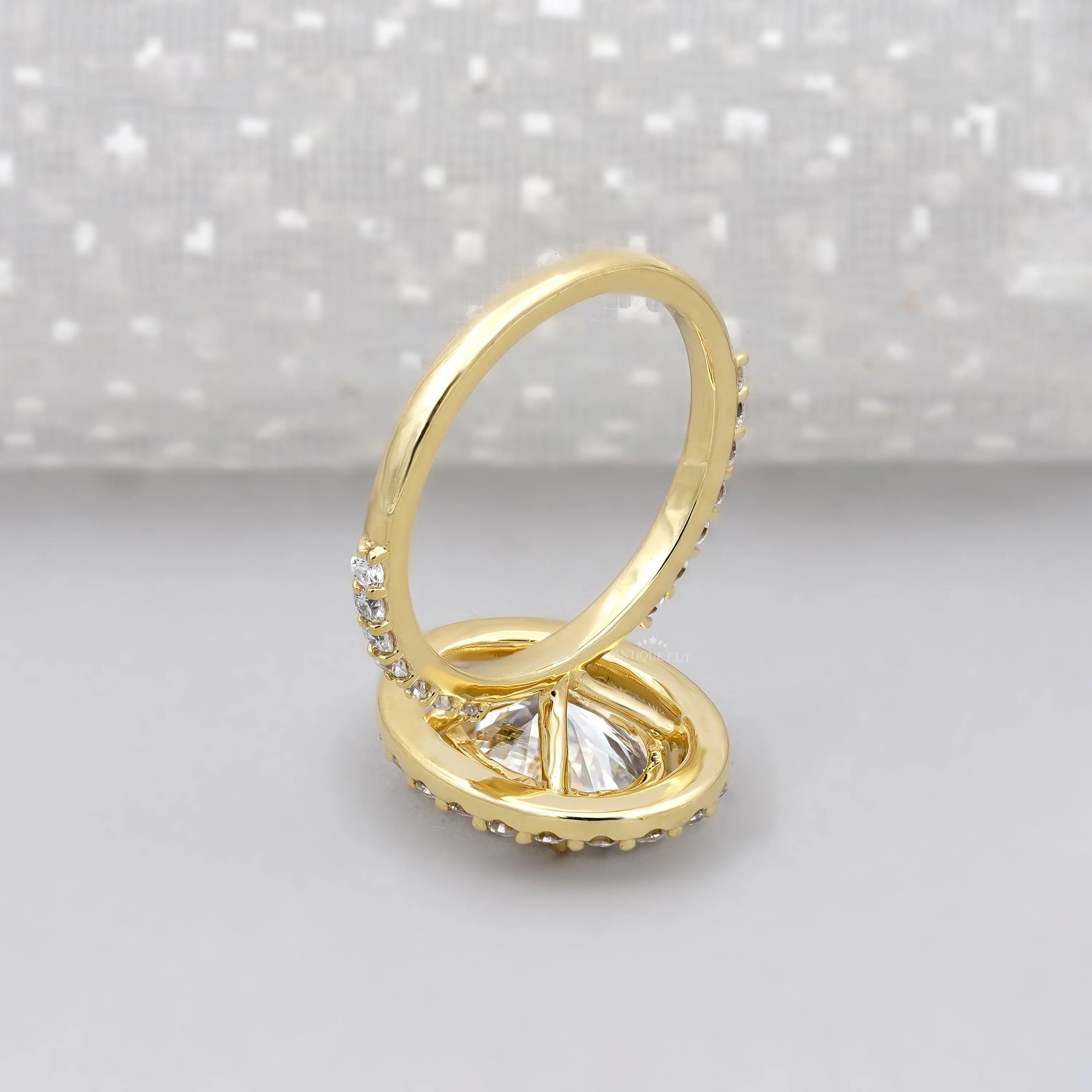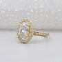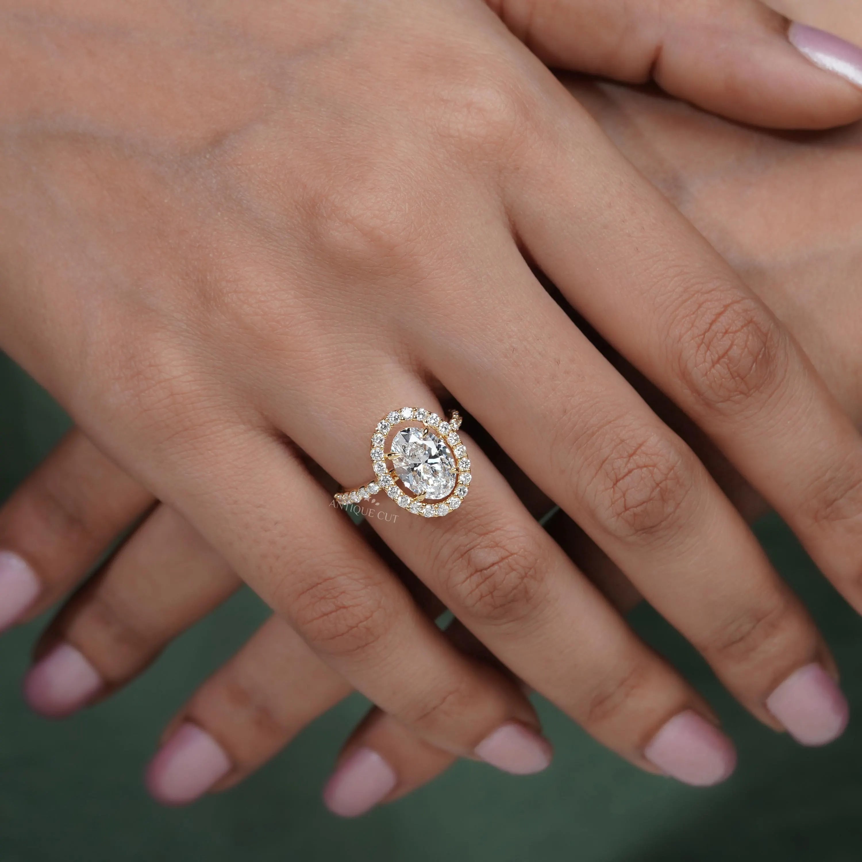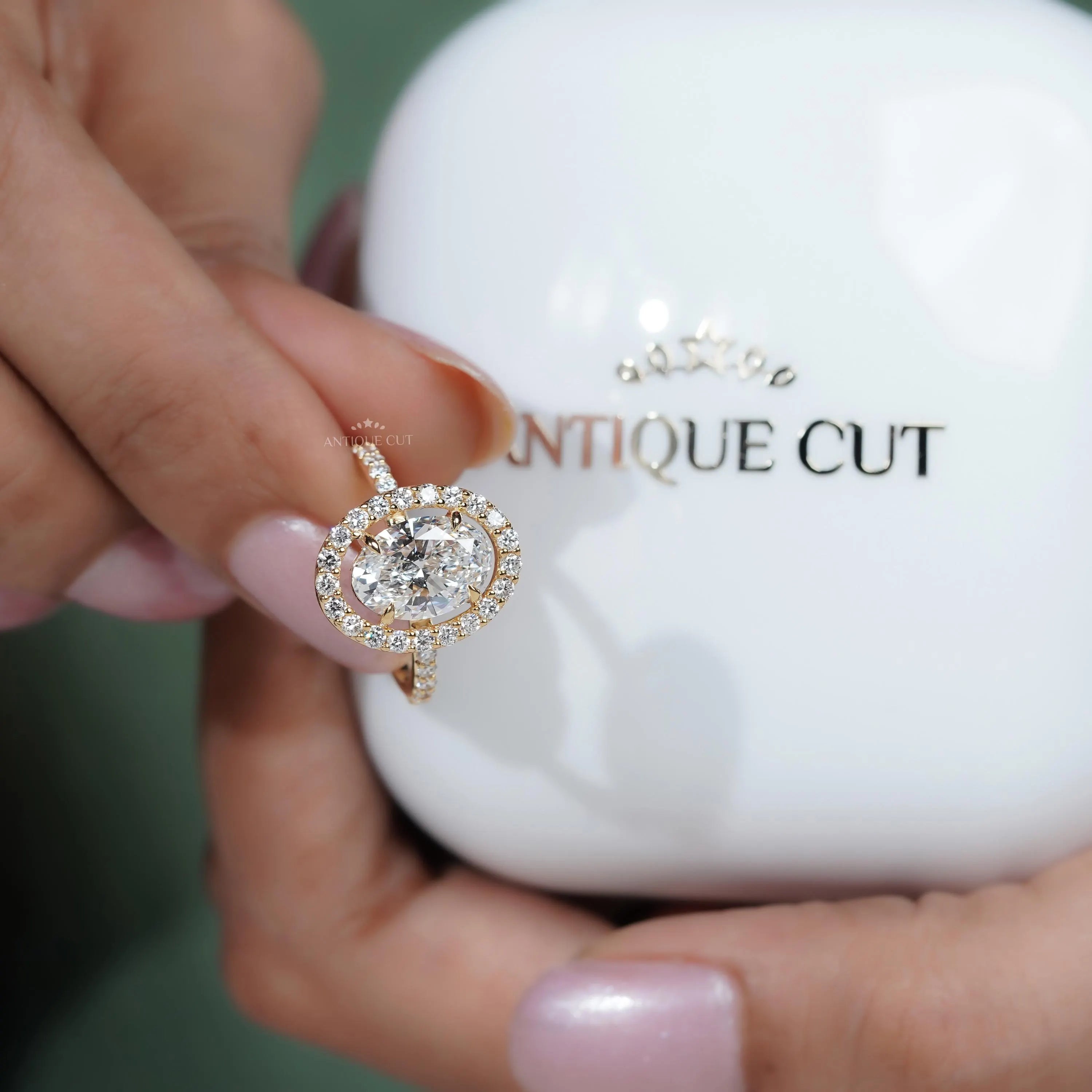 3.20TCW Oval Cut Lab Grown Diamond | Round Halo Engagement Ring | Pave Band | Yellow Gold Ring | IGI Certified D-E-F VVS-VS.