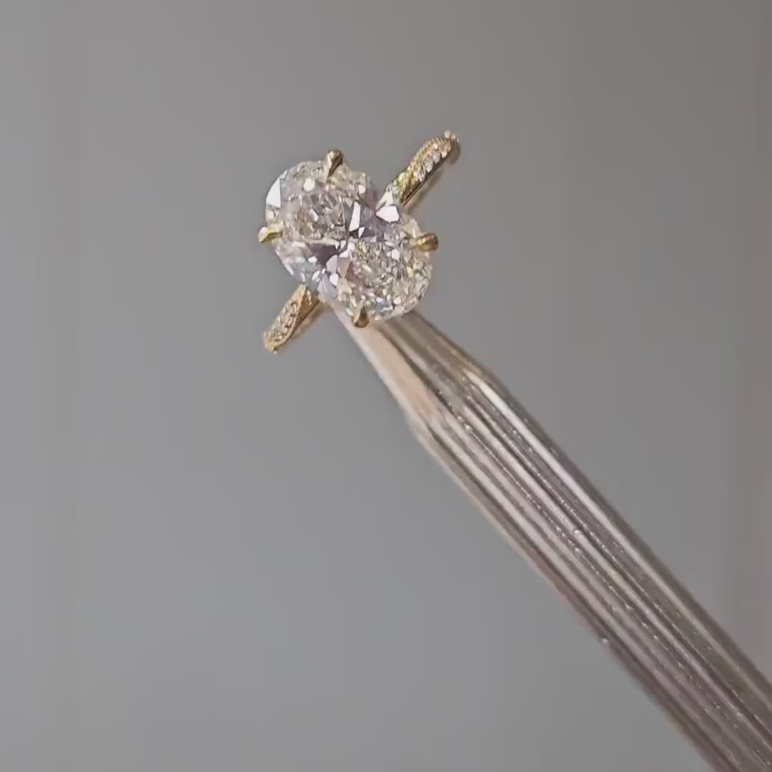 3.20tcw Oval Lab Diamond Engagement Ring | Hidden Halo | IGI Certified | Yellow Gold | VVS–VS