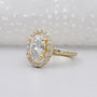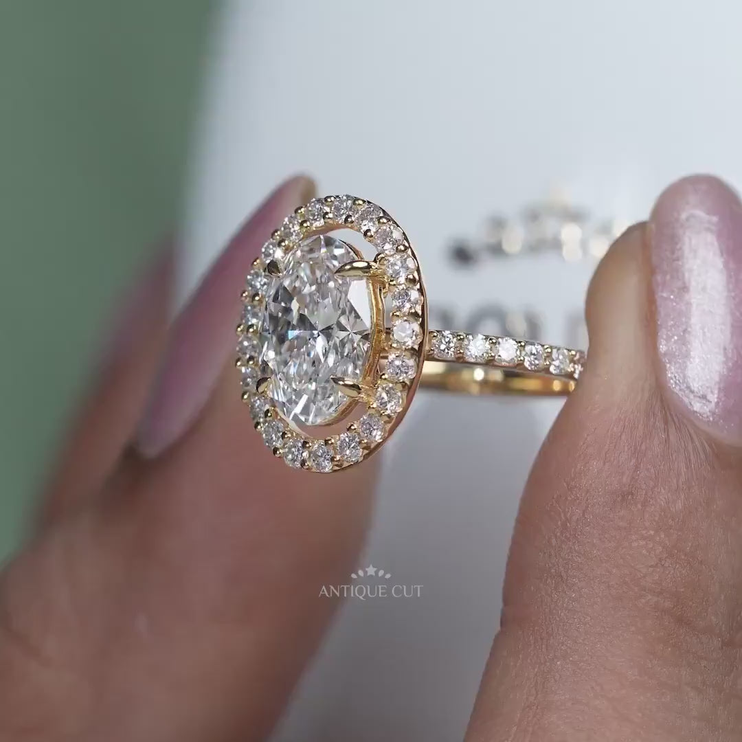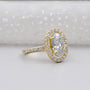 3.20TCW Oval Cut Lab Grown Diamond, 0.70ct Round Halo Engagement Ring, Pave Band, Yellow Gold Ring, IGI Certified D-E-F VVS-VS.