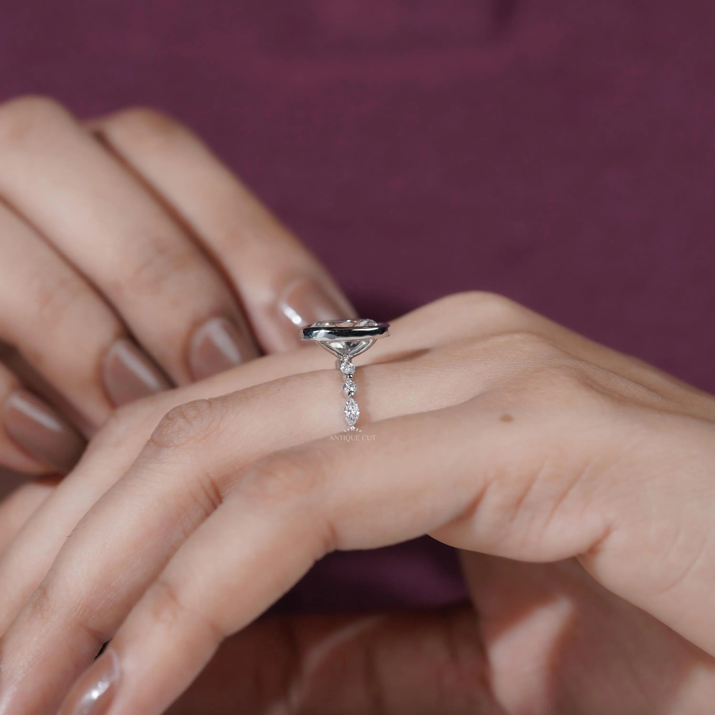 3.35TCW Oval Old Mine Lab Grown Diamond Engagement Ring | Bezel Set | D-E-F VVS-VS | IGI Certified.
