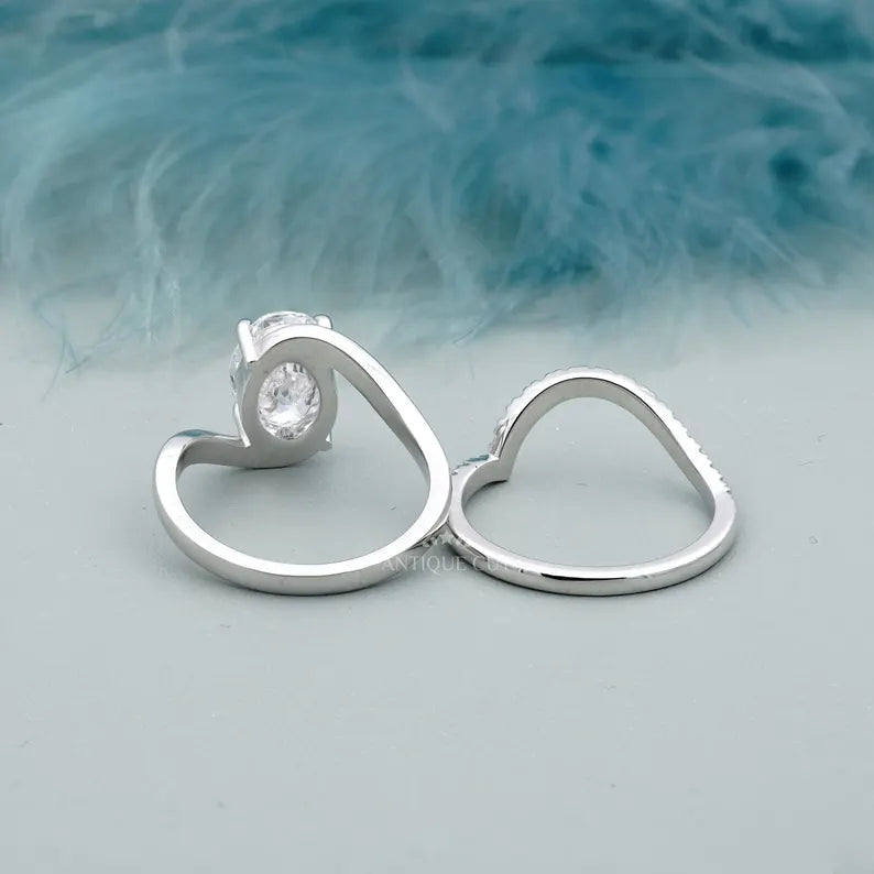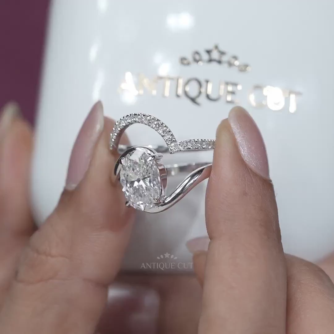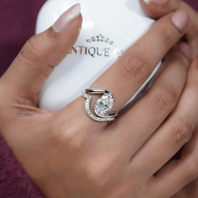 3.40TCW Oval Diamond Bypass Engagement Ring, 0.40ct Round Diamond Band, Lab Grown Diamond Ring IGI Certified D-E-F VVS-VS.