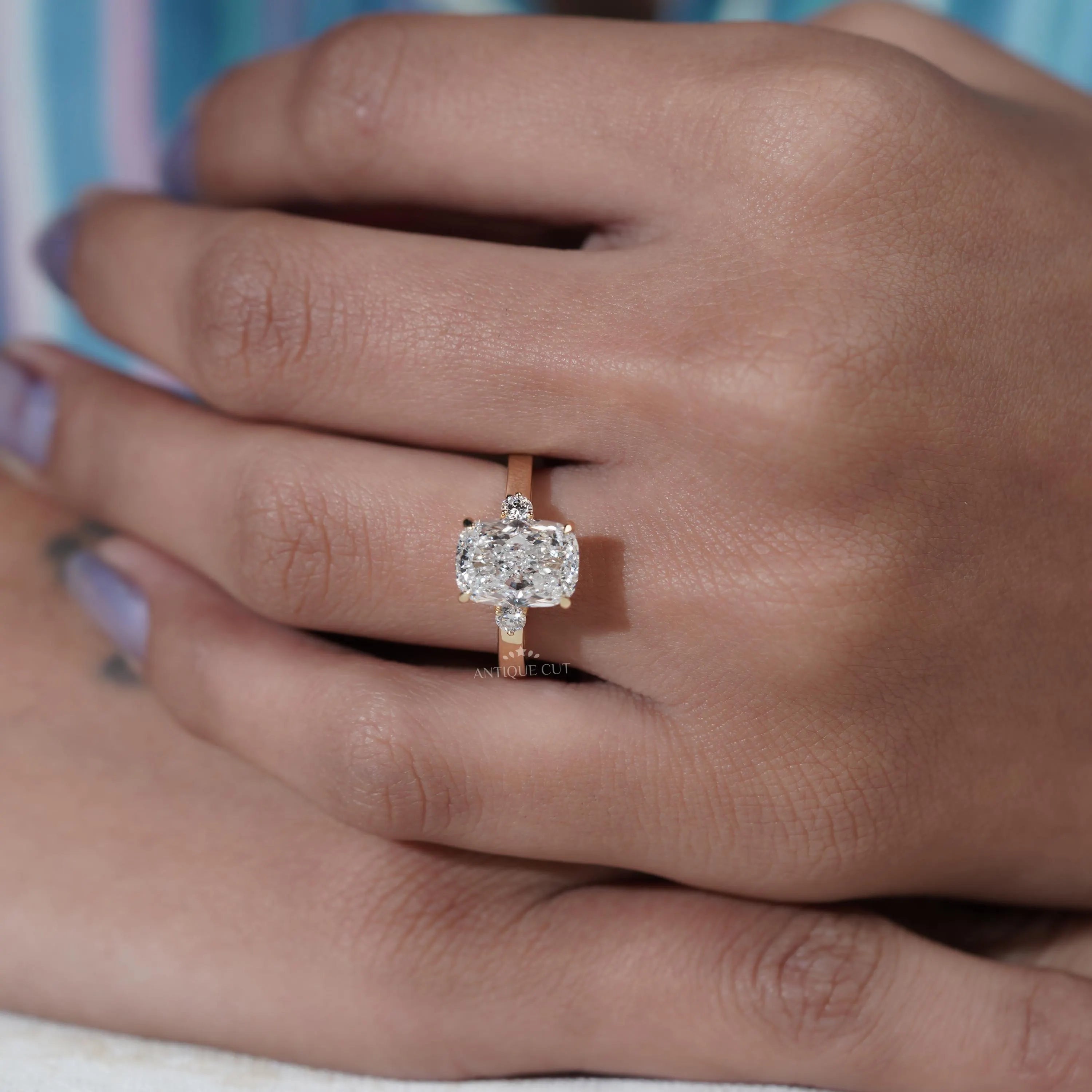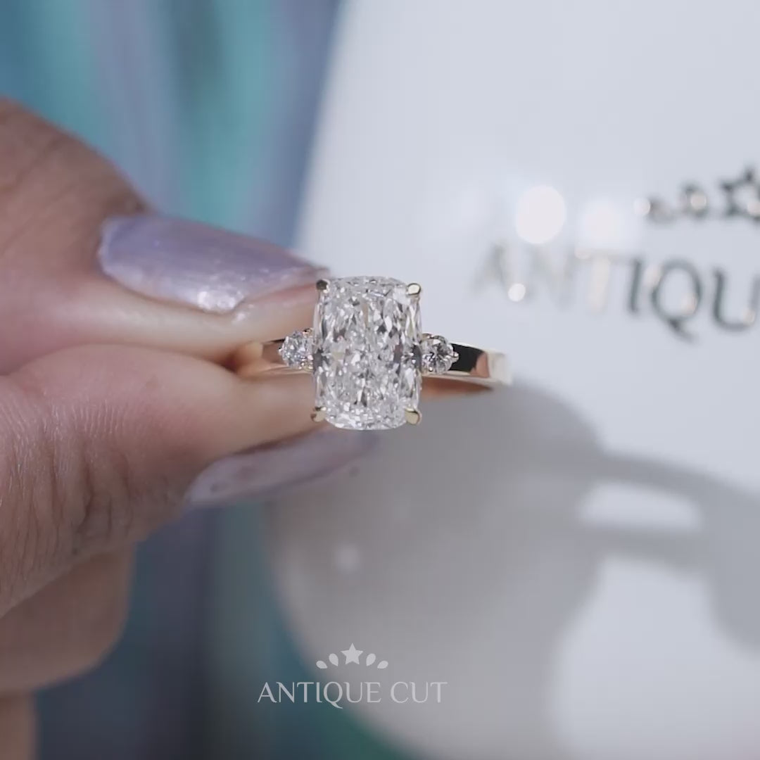 3.50TCW Cushion Cut Lab Grown Diamond Engagement Ring with Round Side Stones | IGI Certified D-E-F VVS-VS.