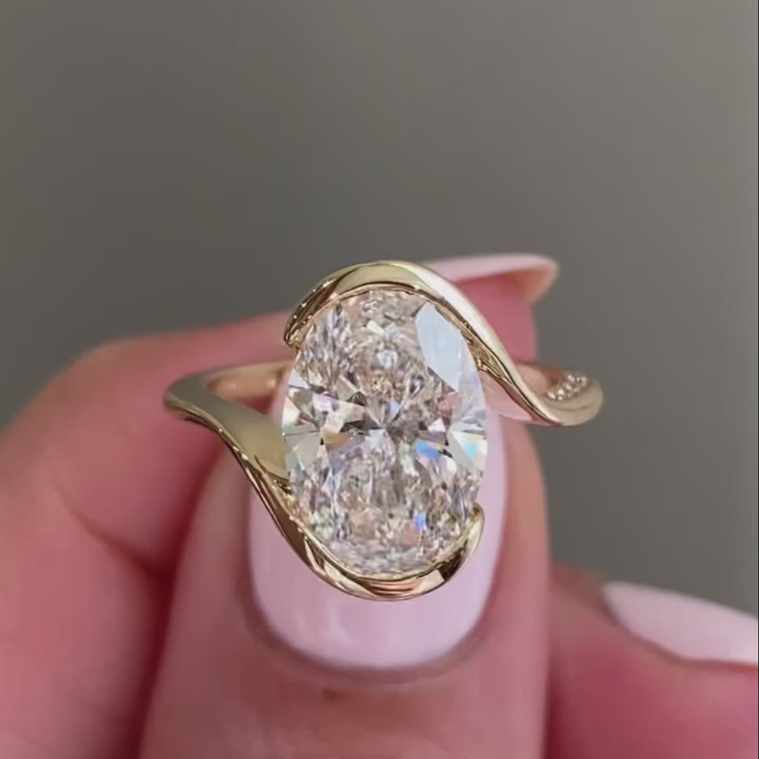 3.50tcw Oval Lab Diamond Bypass Engagement Ring | Unique Style | IGI Certified