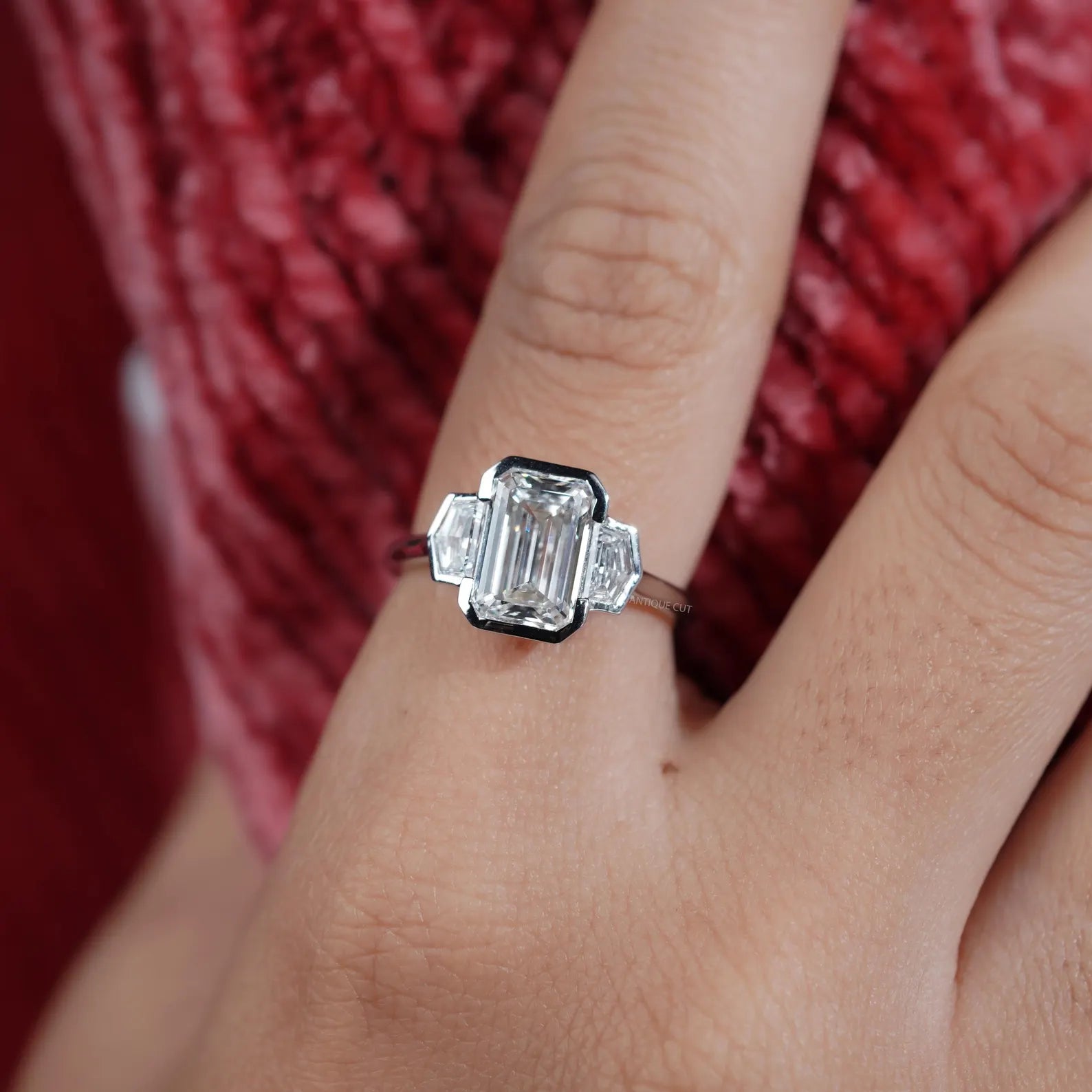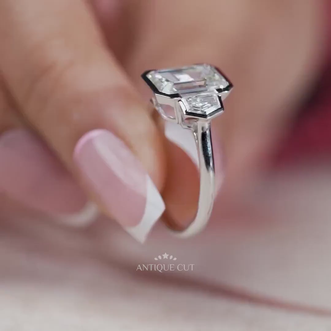 3.60TCW Emerald Cut Three-Stone Engagement Ring | 3ct Emerald Center Diamond | Cadillac Side Stones | Lab Grown | DEF Color | VVS–VS Clarity