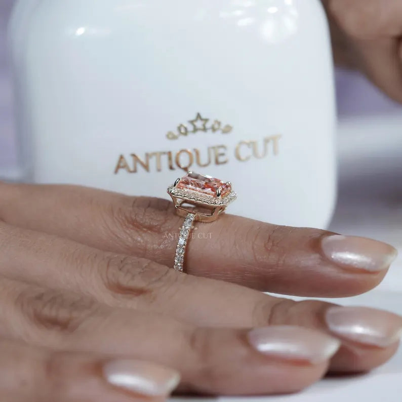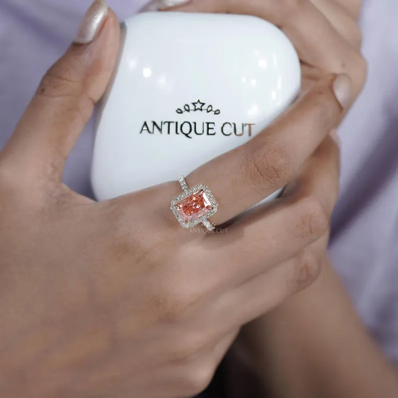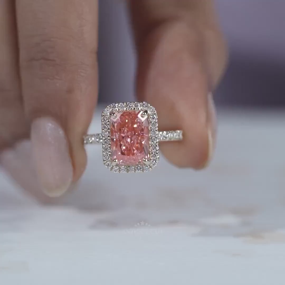 3.60TCW Radiant Cut Pink Diamond Engagement Ring, Halo Ring, Lab Grown Diamond Ring, IGI Certified D-E-F VVS-VS.