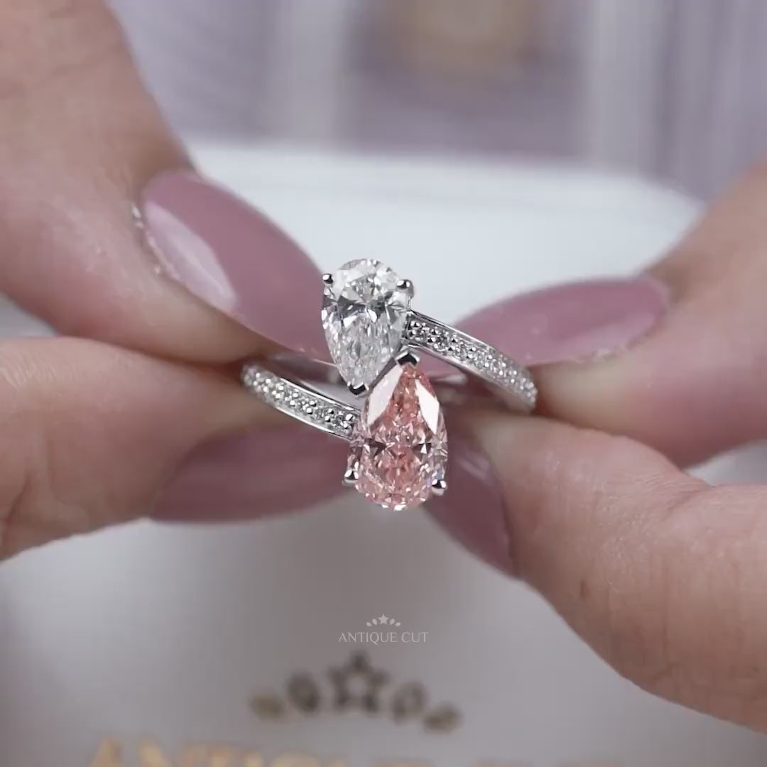 Pink And White Pear 3.80tcw Toi Et Moi Lab Diamond Ring | IGI Certified D-E-F VVS-VS