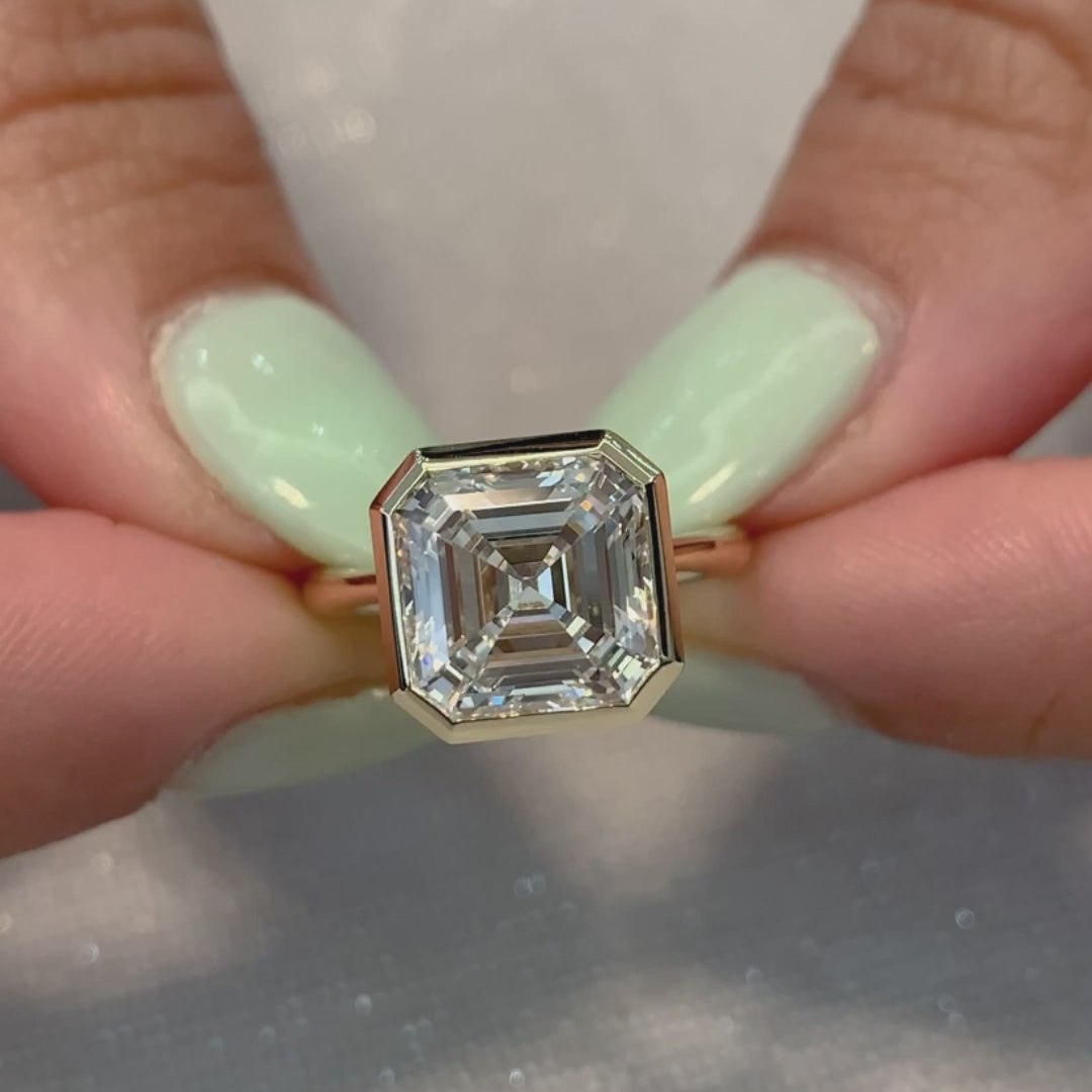 4.00ct Asscher Lab Grown Diamond Bezel Engagement Ring | IGI Certified | DEF VVS | Custom Gold