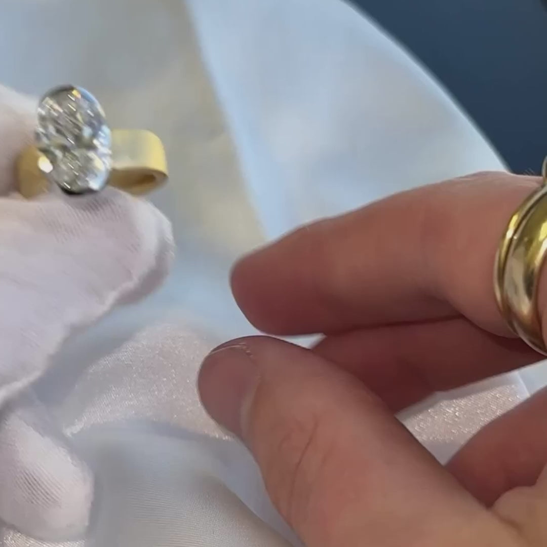 4.00ct Oval Lab Grown Diamond Half Bezel Engagement Ring | IGI Certified | VVS–VS Clarity | Ethical Gold