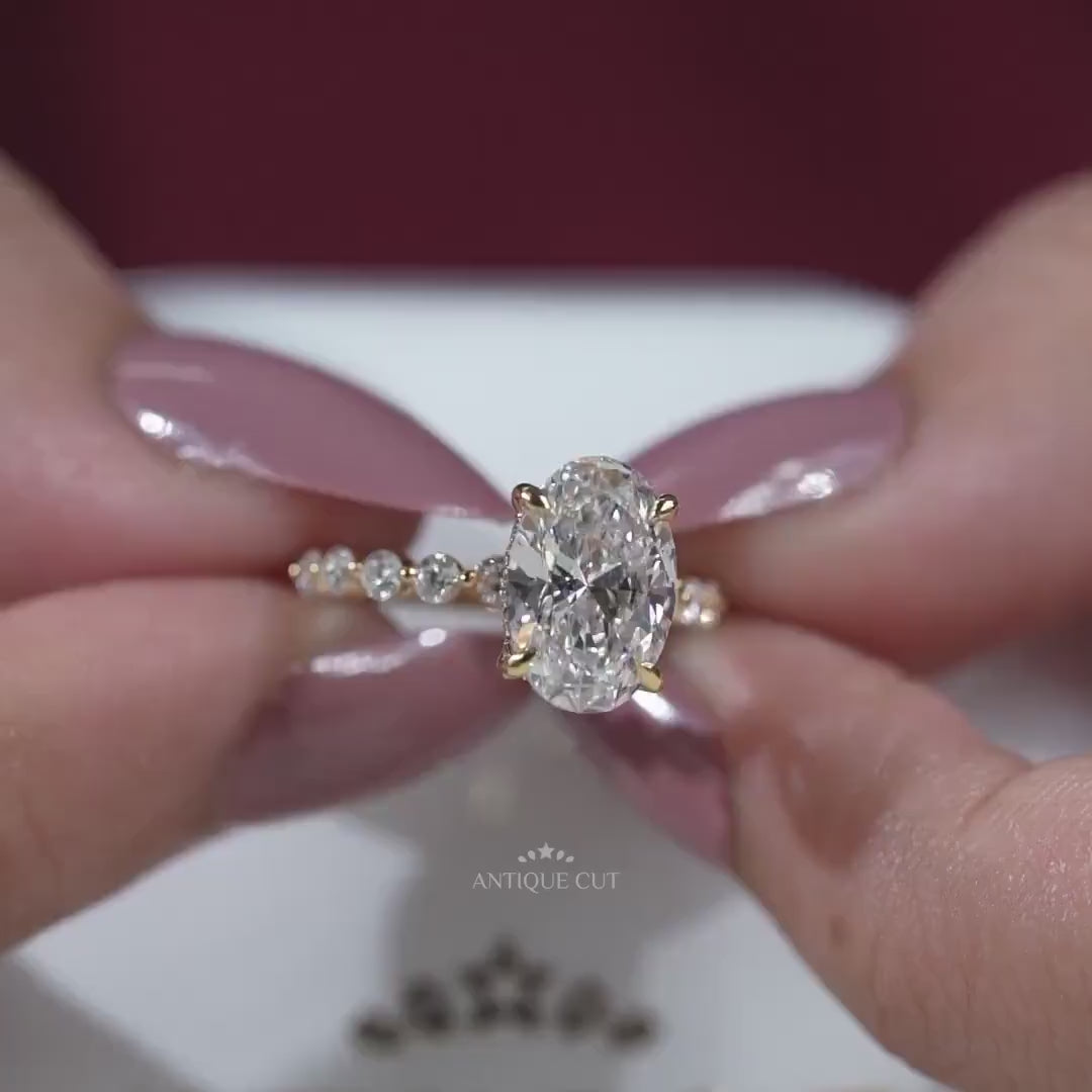 4.00TCW Oval Diamond Engagement Ring, 1.00ct Round Diamond Band & Hidden Halo Lab Diamond Ring | IGI Certified D-E-F VVS-VS.