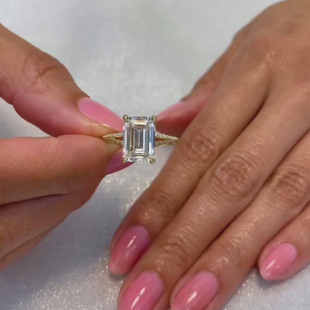 4.30 Carat Emerald Lab Diamond Ring | IGI Certified | Modern Split Shank | White & Yellow Gold