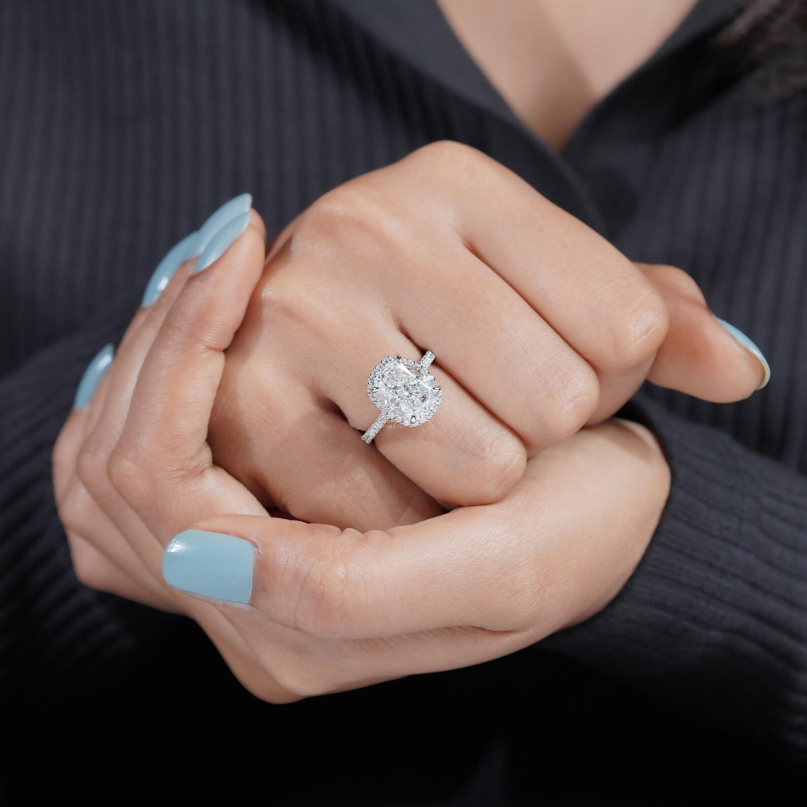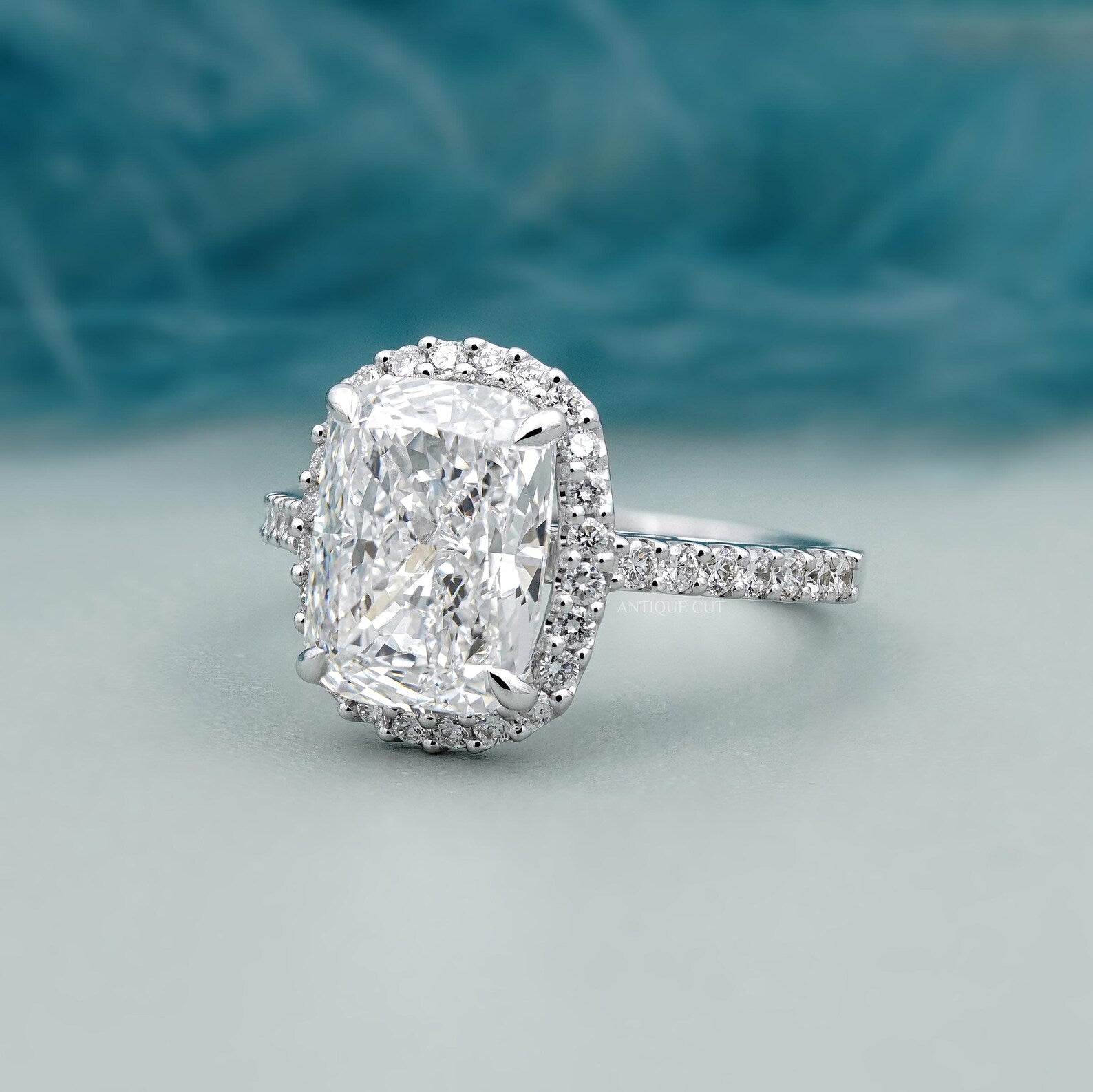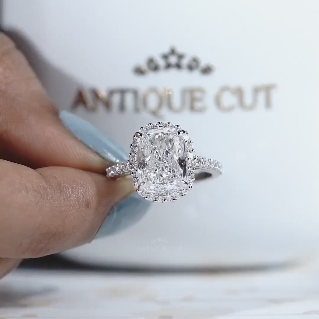 Make a breathtaking statement with this luxurious cushion cut diamond halo engagement ring, designed to showcase timeless elegance and maximum brilliance.