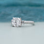 4.00ct Cushion Cut Diamond Engagement Ring | Three Stone Ring with 0.30ct Side Diamonds | Platinum / White Gold Bridal Jewelry