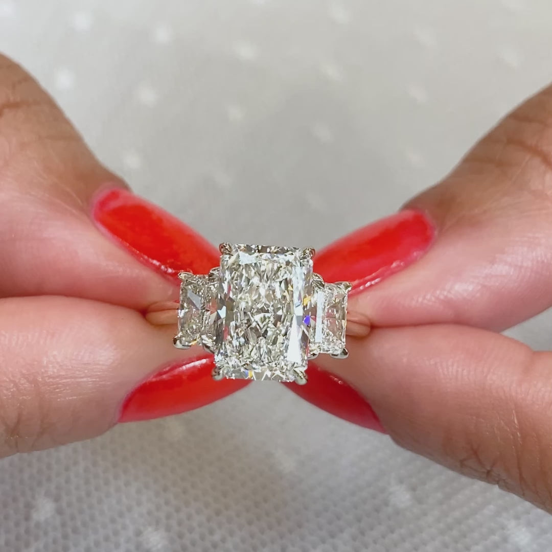 • Stunning 3.00ct radiant center with radiant side stones