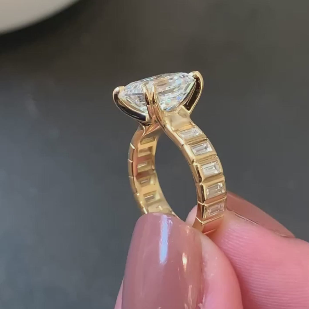 Celebrate timeless elegance with this breathtaking 6.00 total carat weight Asscher lab-grown diamond engagement ring, masterfully crafted in a luxurious scoop setting with secure double prongs. Featuring a dazzling 4.00ct Asscher-cut center stone paired with 2.00ct baguette-cut side stones, this ring radiates brilliance, sophistication, and modern love.