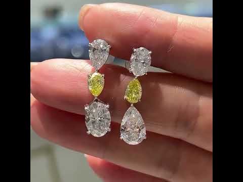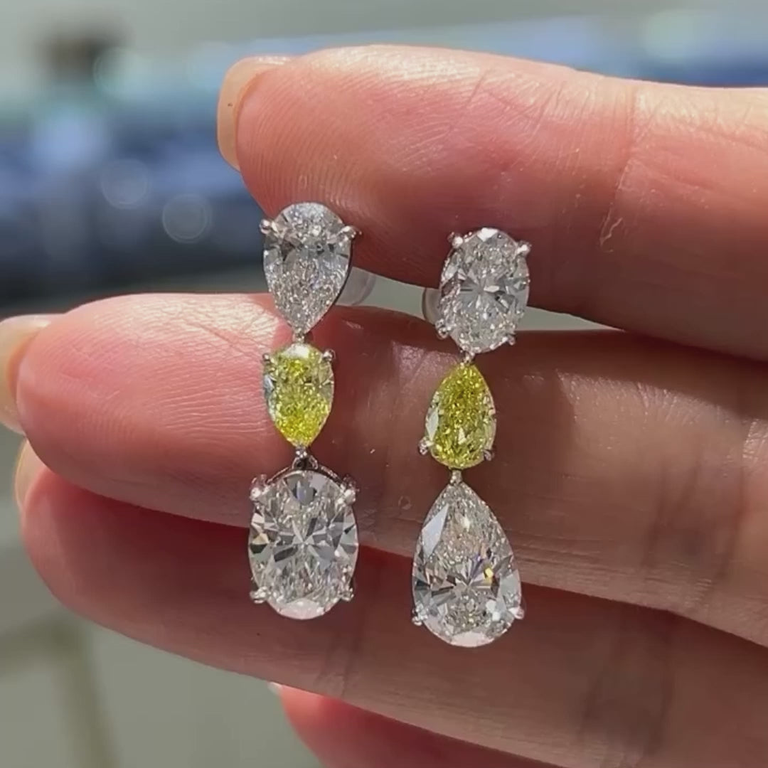 7.00tcw Pear Fancy Yellow & Oval Lab Grown Diamond Dangle Earrings | White Gold | VVS–VS Clarity | IGI Certified | Luxury Drop Earrings