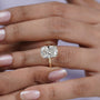 • 7.10ct cushion-cut center stone for ultimate finger coverage