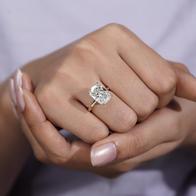 Turn every moment into a luxury statement with this breathtaking 7.10ct Cushion Cut Diamond Engagement Ring. Featuring a massive, fire-rich cushion-cut center diamond in a timeless four-prong solitaire setting, this ring is designed for those who want bold brilliance with classic elegance.