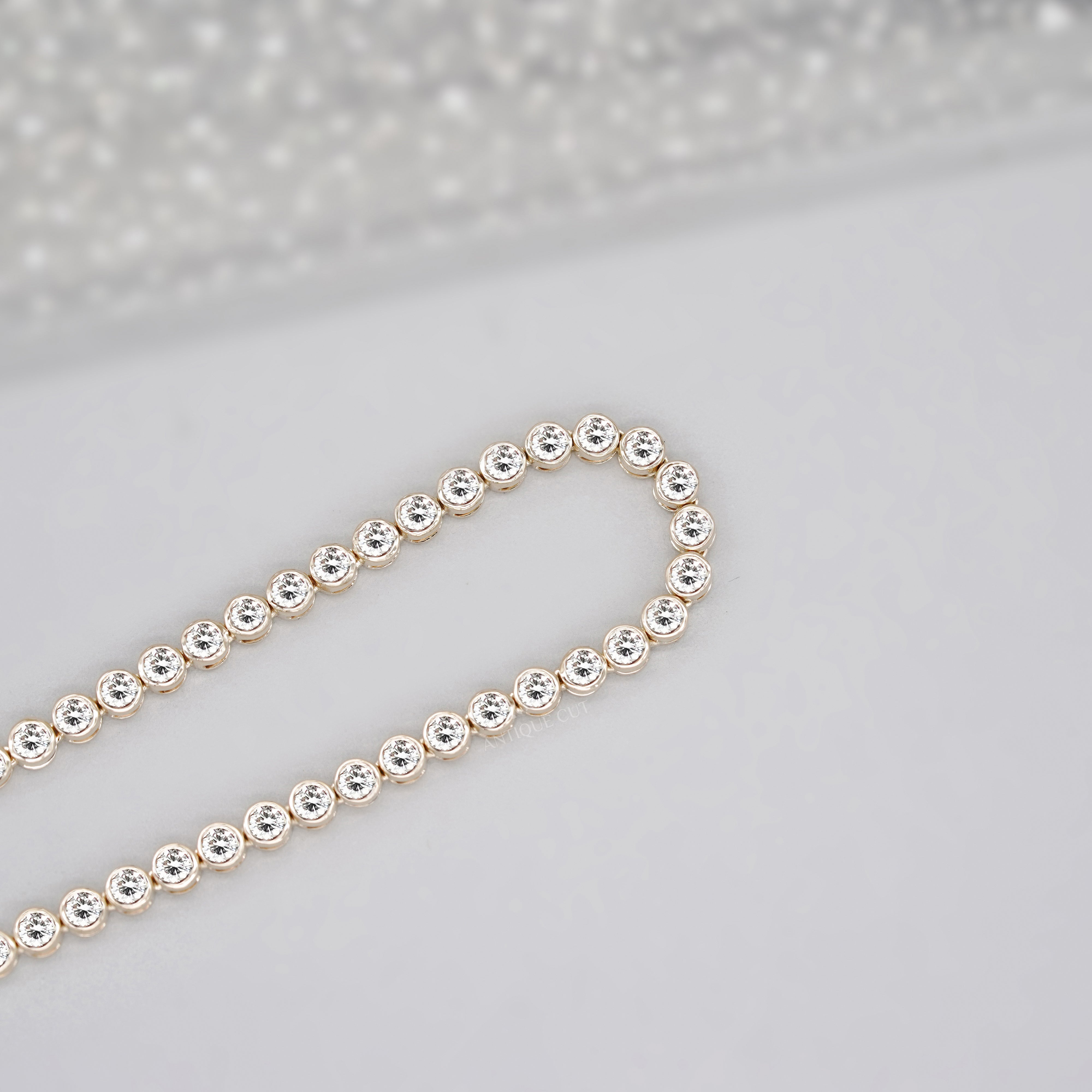 7.50tcw Diamond Tennis Necklace | Bezel Set Round Brilliant Diamonds in 14K Gold | Classic Dainty Tennis Chain | Gift for Her